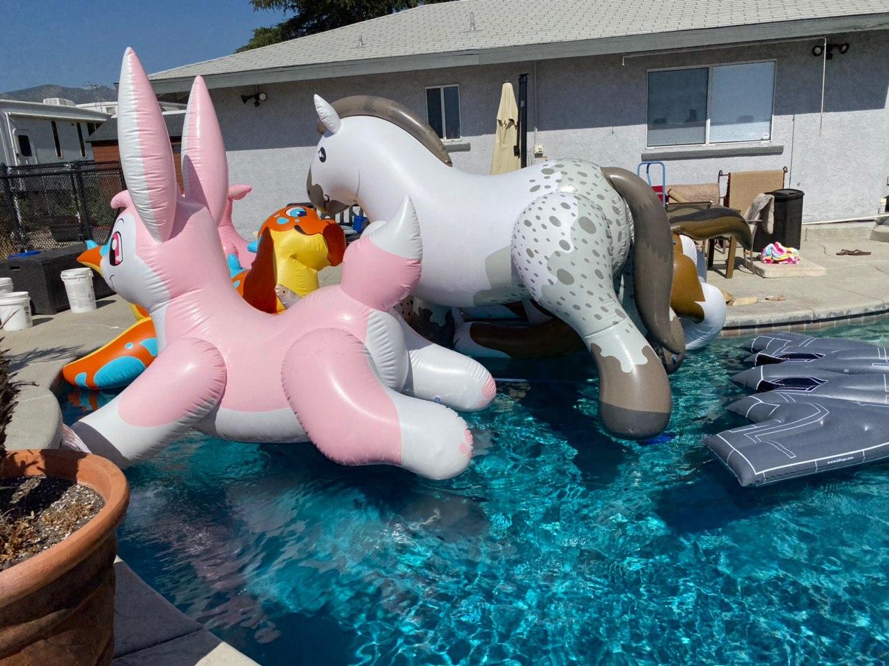 У нас для купания в бассейне в саду тоже запрещено использовать мячи и круги. Строго-настрого запрещено. Кстати, у нас еще и формально запрещено гулять по саду. Не время гулять, товарищи, сидите дома. Но в бассейне купаться можно. А вот гулять вокруг бассейна - нельзя. Сесть рядом и сидеть. Но нельзя сидеть на надувном матрасе, через него распространяется коронавирус. Сидеть можно только на обычном полотенце. При этом цвет полотенца никак не регламентирован, что тоже, как я считаю, непорядок.