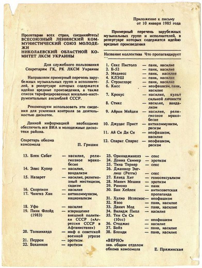 помню в анало-гичном списке еще Дюран-Дюран засветился. За неофашизм, вроде.