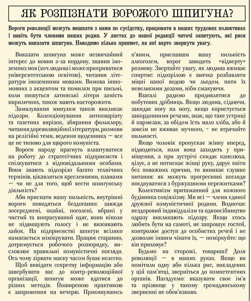 Просто вражеские агенты не выглядят, как злые на весь мир собацюги, в отличие от обычного советского человека. Они обычно довольно выглядят, и даже улыбаются всем встречным. Конечно, пока к ним не применили спецсредство "рессора от трактора Беларусь".