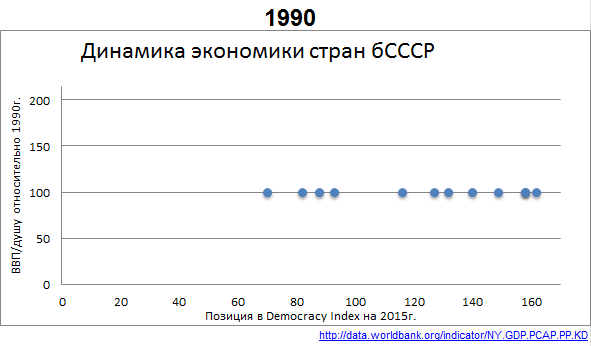 Вот вам график связи политики и экономики с поправкой на достаток населения (как ее делать вы прочтете в любом учебнике статистики):