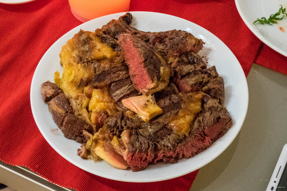 Это дорогое мясо, где-то под 20 евро. А вот обычный здоровенный антрекот будет стоить где-то 5 евро.