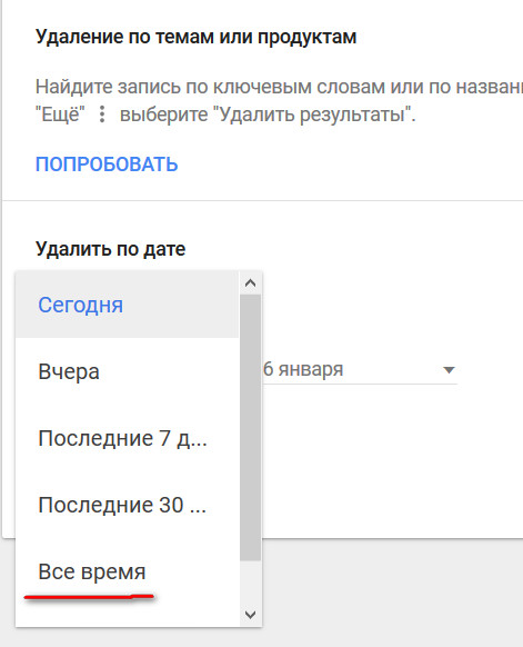 И в следующем окне - "Удалить за все время".
