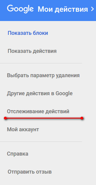 Теперь отключаем виды отслеживаний. Менюшка слева и там выберите "Отслеживание действий".