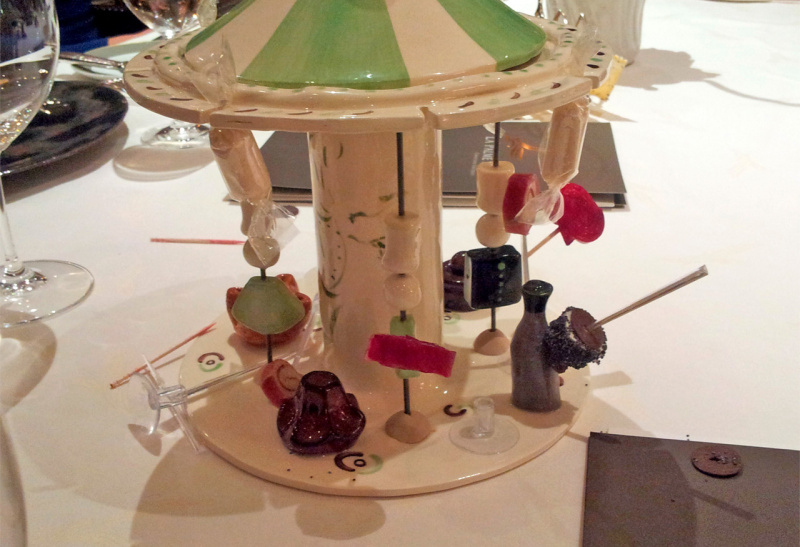 Ой, а я как-то в Каннах в двухзвездочном мишленовском ресторане сфотографировал вот это произведение искусства: там одни кусочки были съедобные, а другие, как выяснилось, были керамические, так что я себе чуть зуб не сломал. (Там вообще ужин был фееричный.) Вот теперь боюсь, что меня могут штрафануть, а то ведь я раскрыл страшную тайну каннского двора...