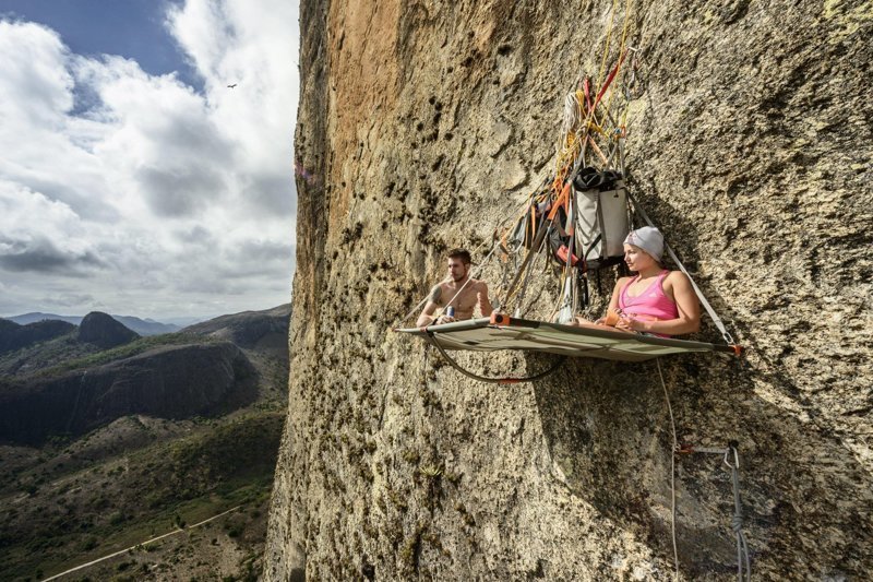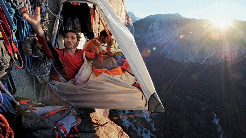 Какое развлечение и "не профи"? На второй фото Томми Колдвелл и Кевин Йоргенсен - топовые скалолазы - во время своего проекта Down Wall в Йосемите, во время которого они вот так на стене жили 19 дней. Инфы про это в сети вагон, даже фильм есть.