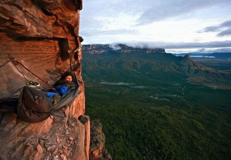 Я эти фотки раньше видел, спросил у нее - правда ли? Сказала, что это просто развлечение такое - поспать на отвесной скале. Туристический аттракцион такой, нервы себе пощекотать и селфи прикольных наделать.
