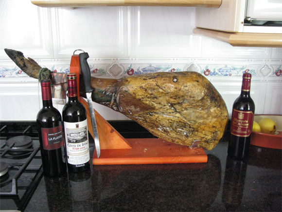 Кстати, идея сначала попробовать хамон в нарезке в вакуумной упаковке прежде чем покупать ногу (а тут выбор огромный) - полностью провалилась. Даже суперэлитный хамон в такой упаковке - фигня полная. Он жестче, слеживается, становится какой-то склизкий - в общем, со свежаком разделанной ноги не сравнить даже рядом. Так что нога и только нога!