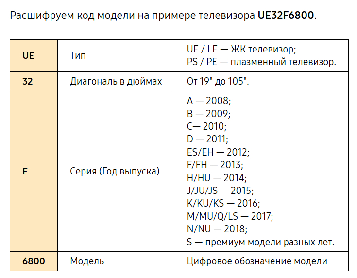 К слову сказать, год выпуска телика пишется на шильдике отдельно: указывается год и месяц производства. А в коде модели буквой кодируется год релиза серии (начала запуска в производство). А фактически производится они могут после этого еще несколько лет, а потом снимаются с производства.