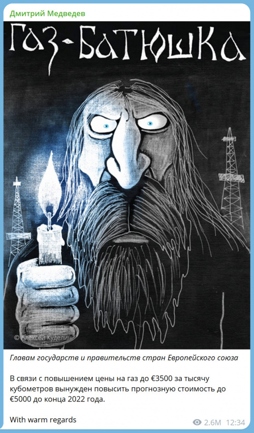 Всё как-то устаканилось и живёт себе. Более того, сейчас цена меньше той, что была в 2012 году, когда всё вообще ещё было хорошо и никто даже не намекал что будут перебои с поставками. Мало по малу растёт доля зелёнки, новые трубы тянут, чтобы алжирский и казахский газ, минуя Россию, качать, СПГ везут и разгружают. Так что апокалипсис слегка не состоялся, и собаками намыливались только во влажных поллюциях Маргоши Симоньян.  Расходимся.