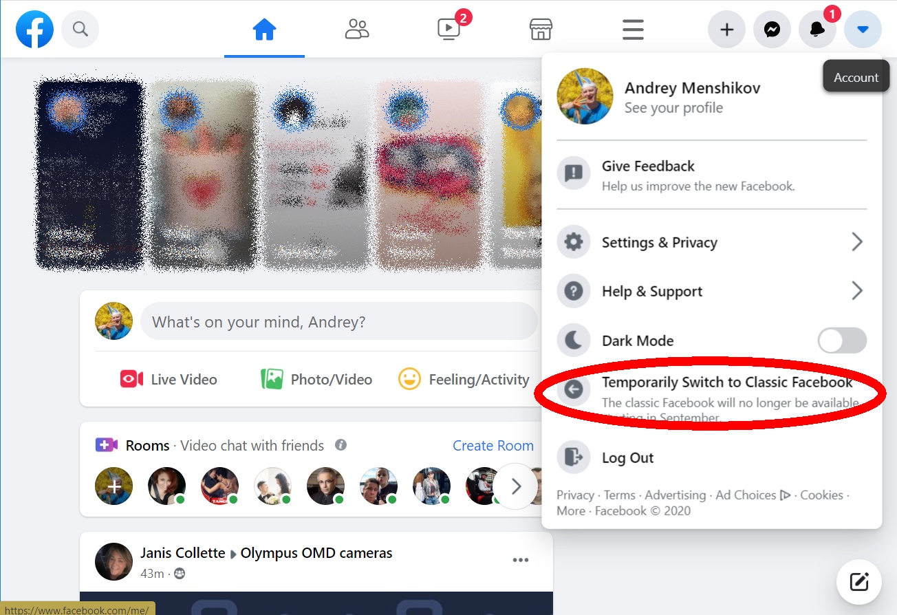 У меня в FB есть кнопка включения старого интерфейса, хотя и написано, что это "временно"
