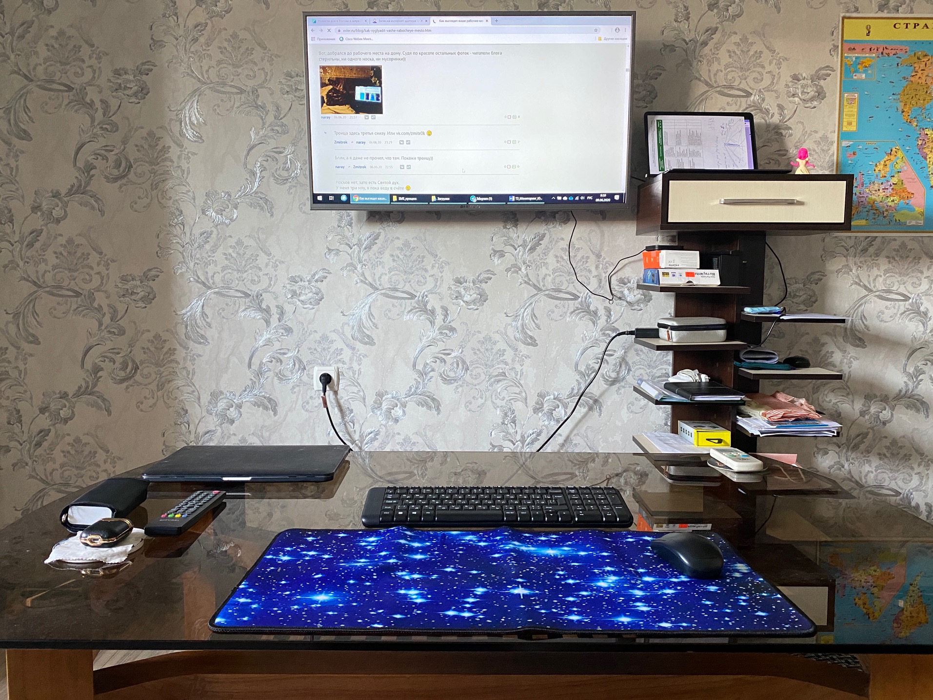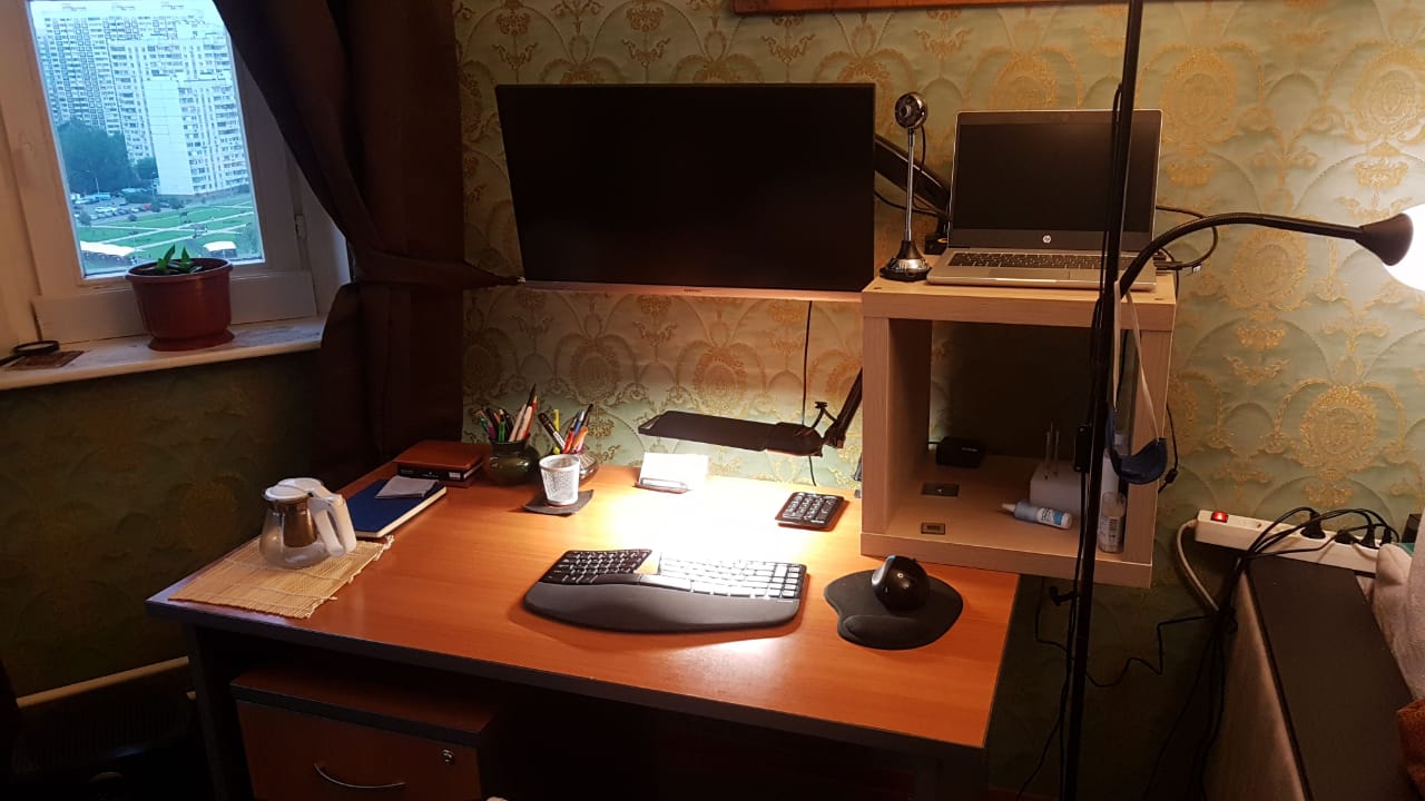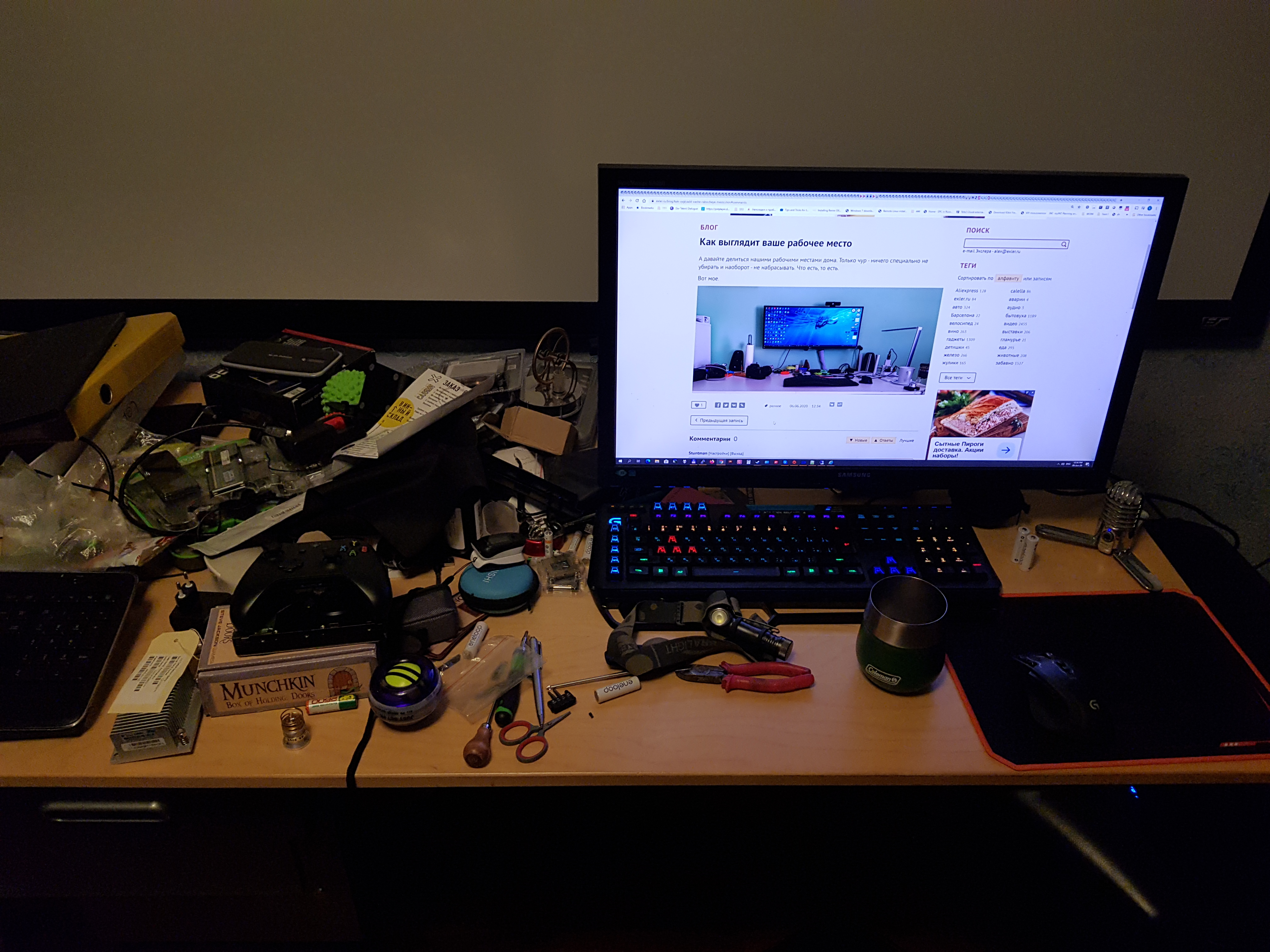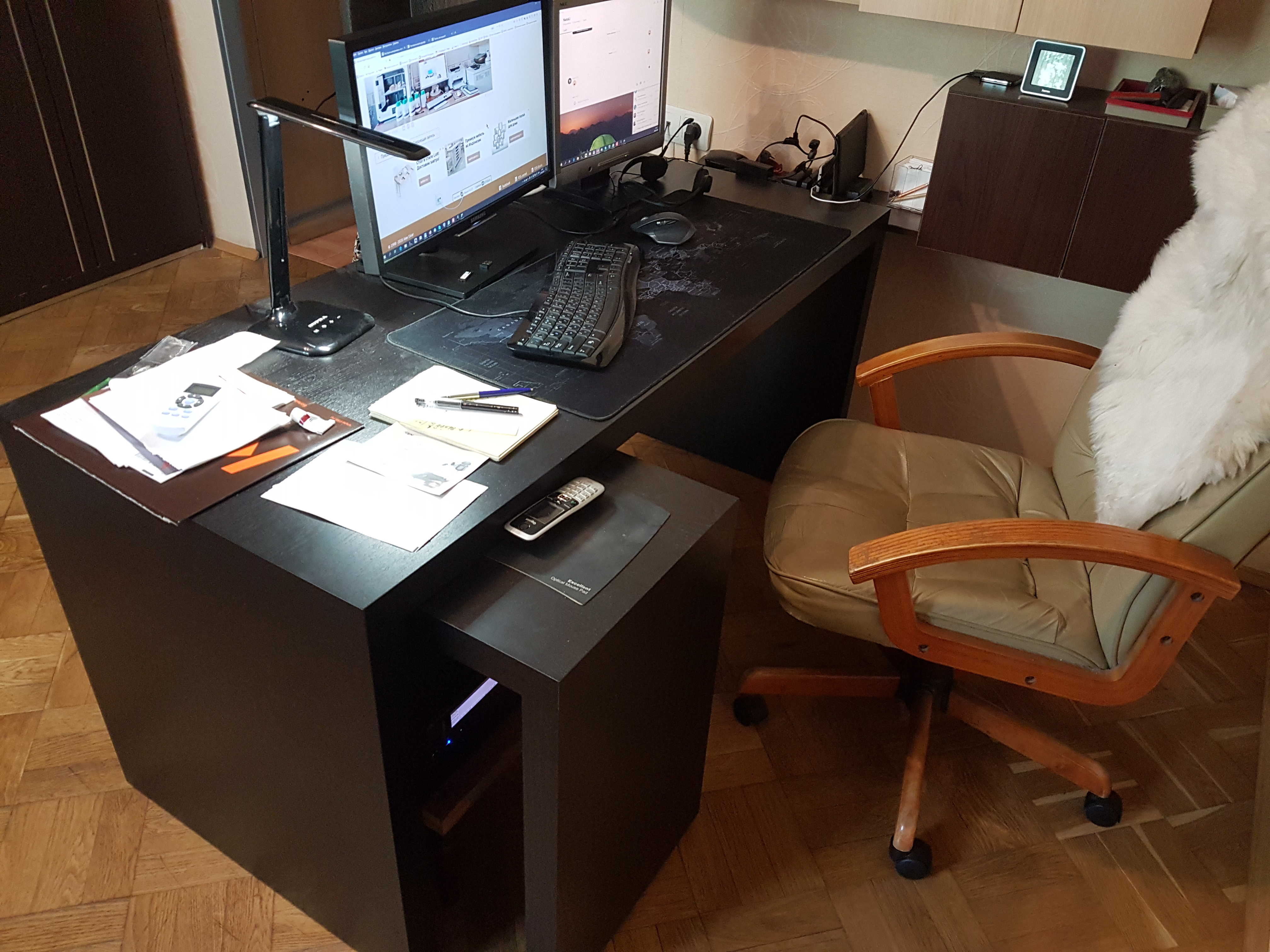 Я бы показал обычное состояние своего рабочего места, но оно у меня на работе, а я на выходных дома. (а самоизоляция — это не про нас).