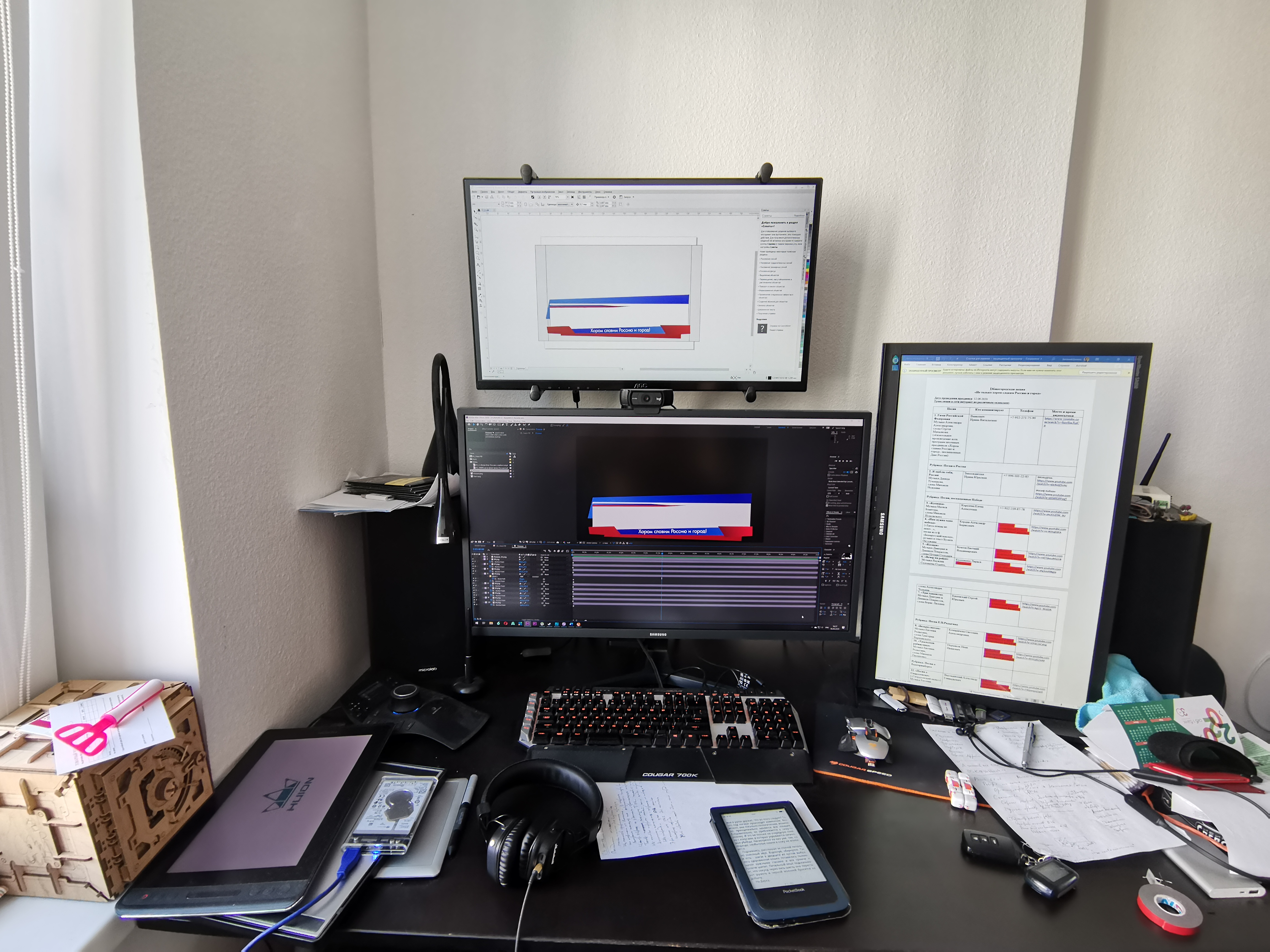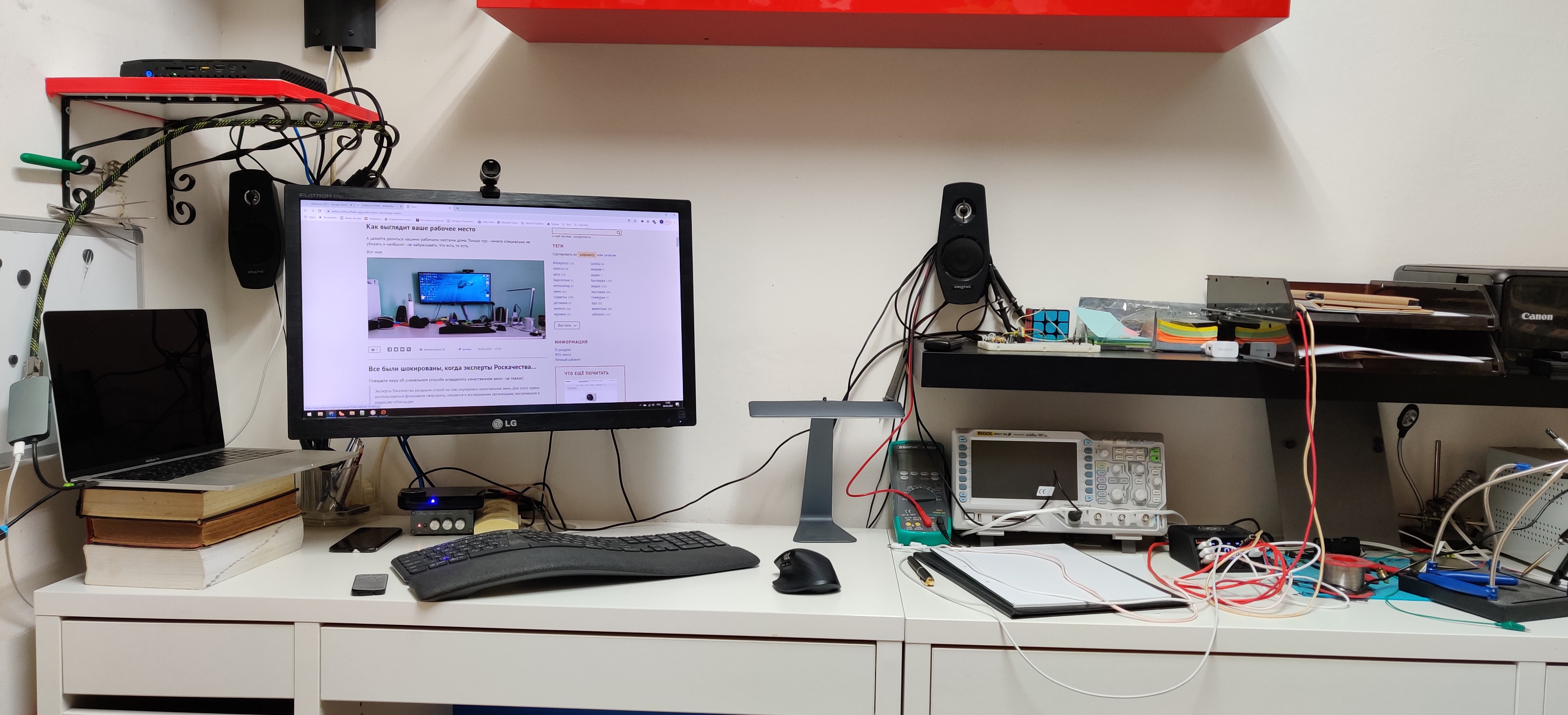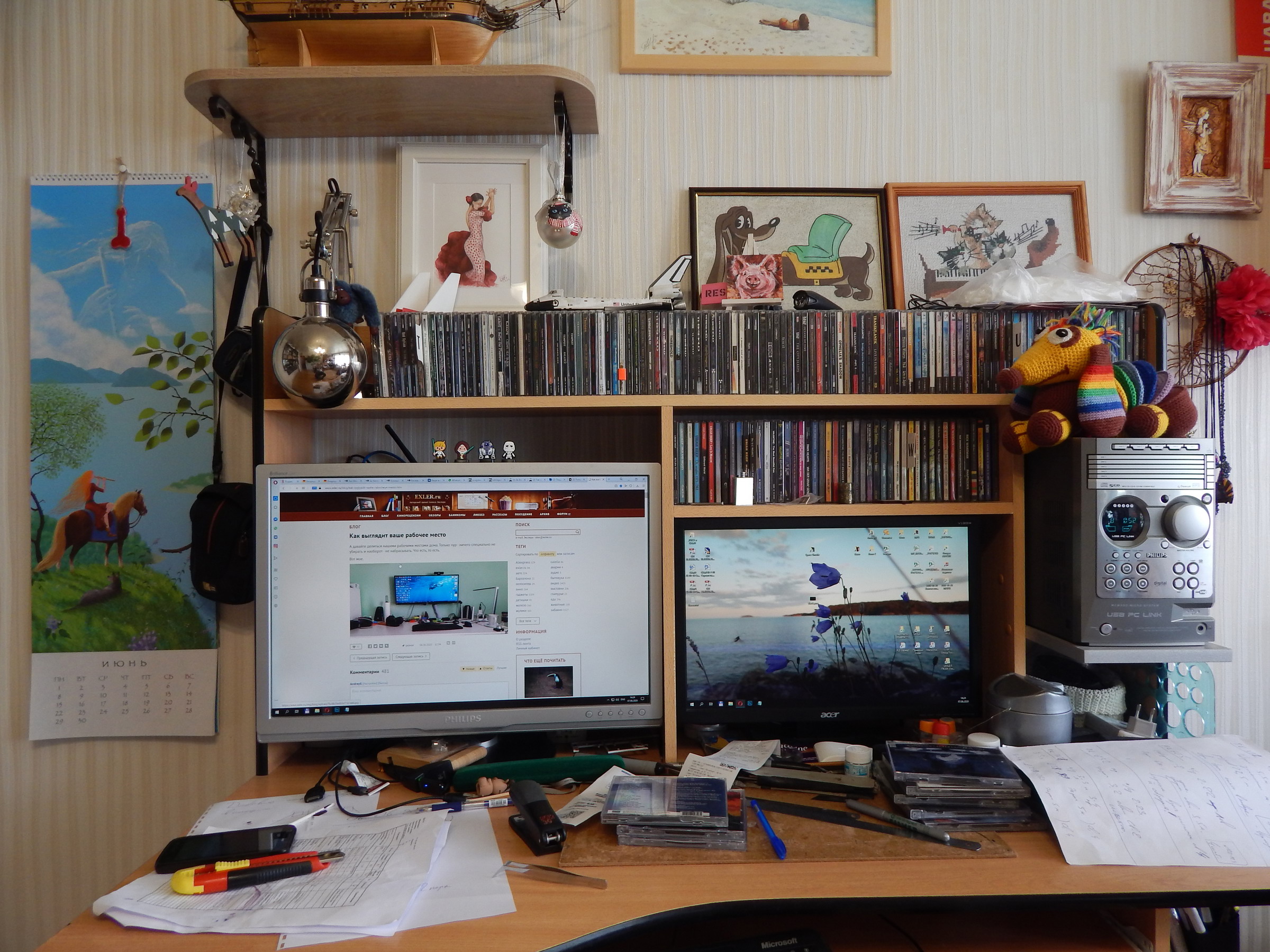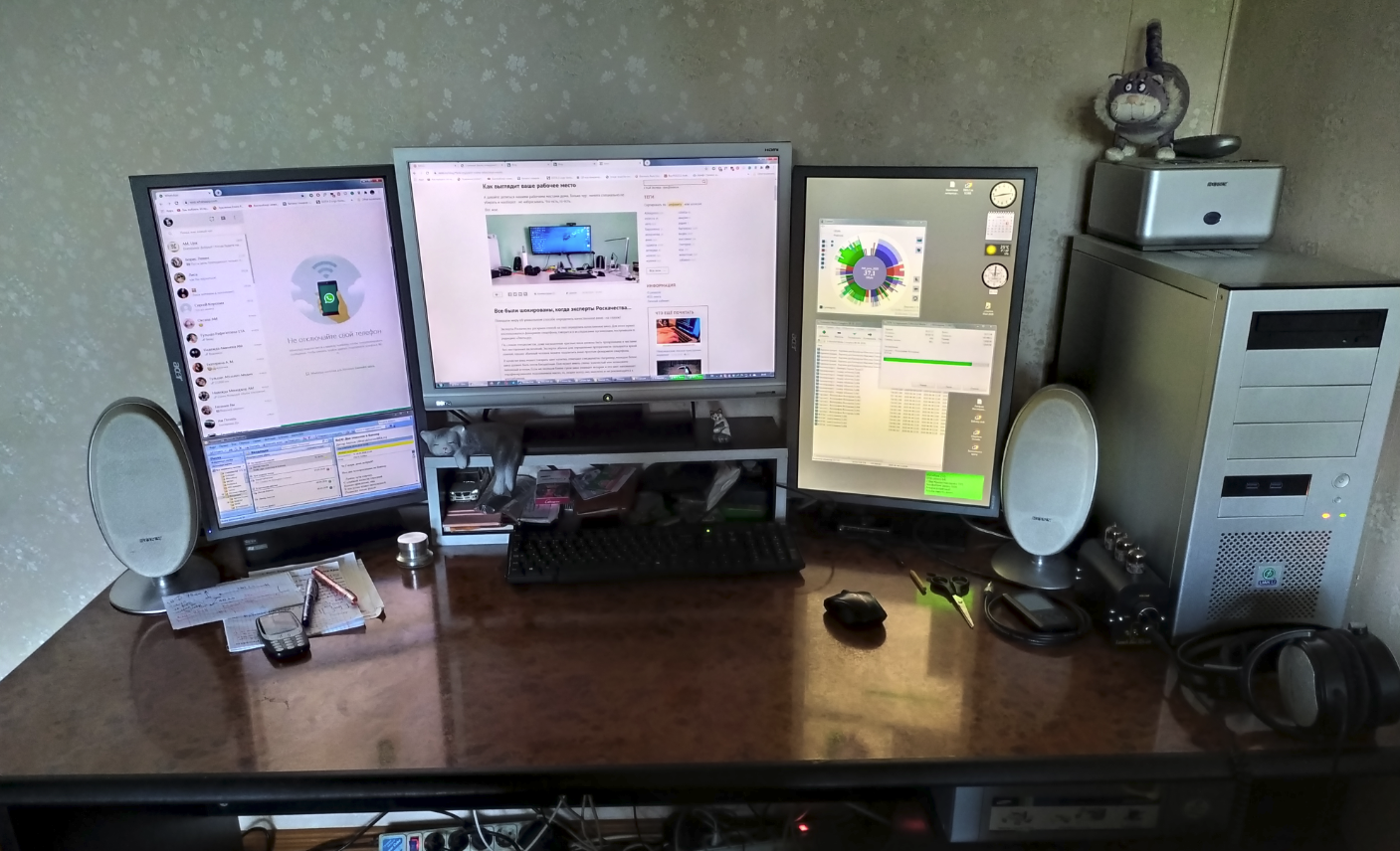 Я бы показал обычное состояние своего рабочего места, но оно у меня на работе, а я на выходных дома. (а самоизоляция — это не про нас).