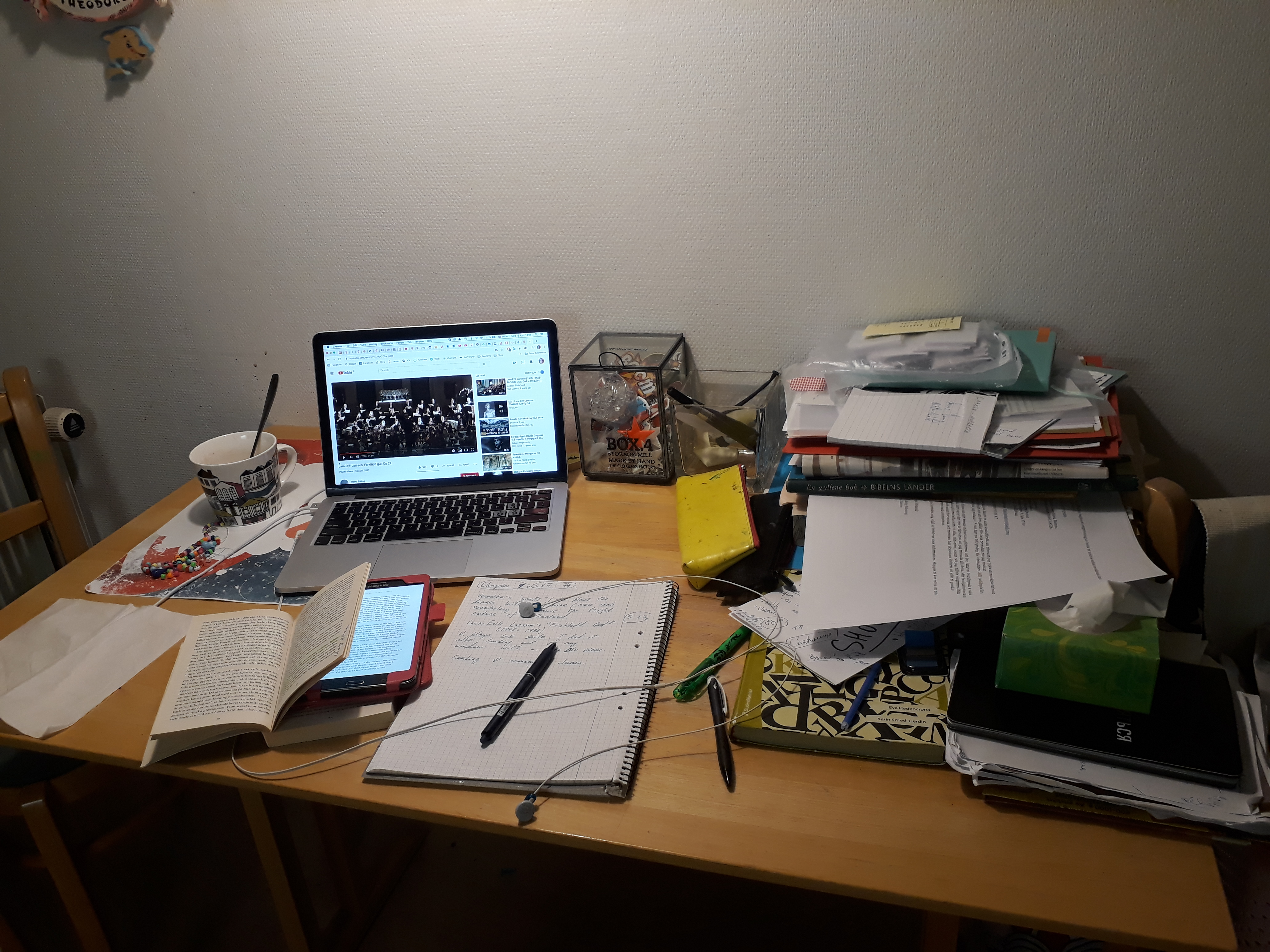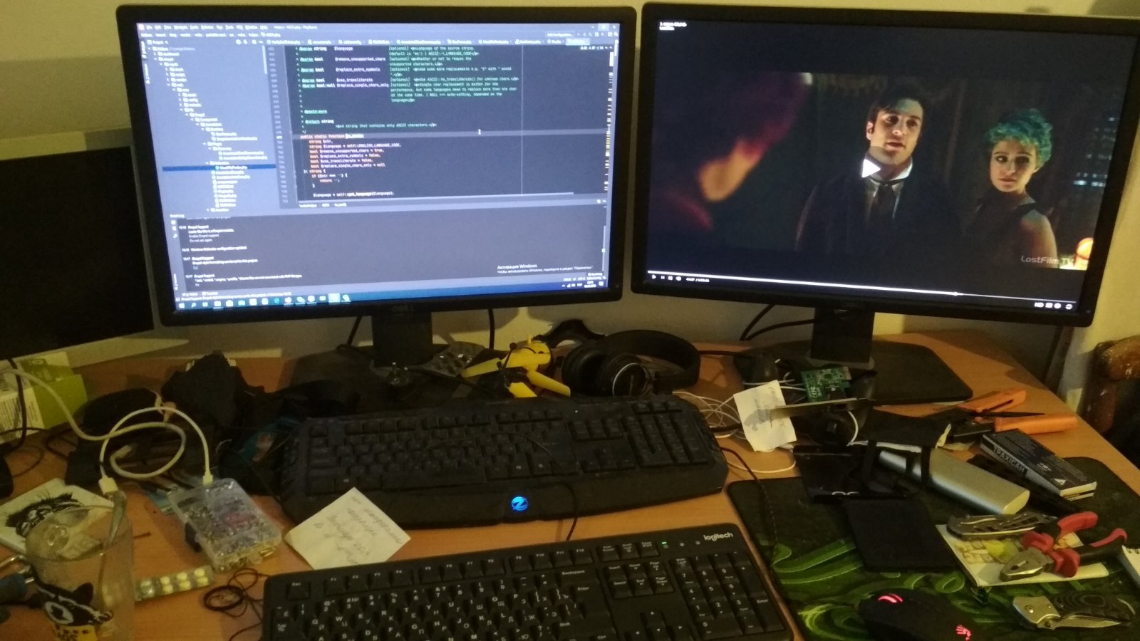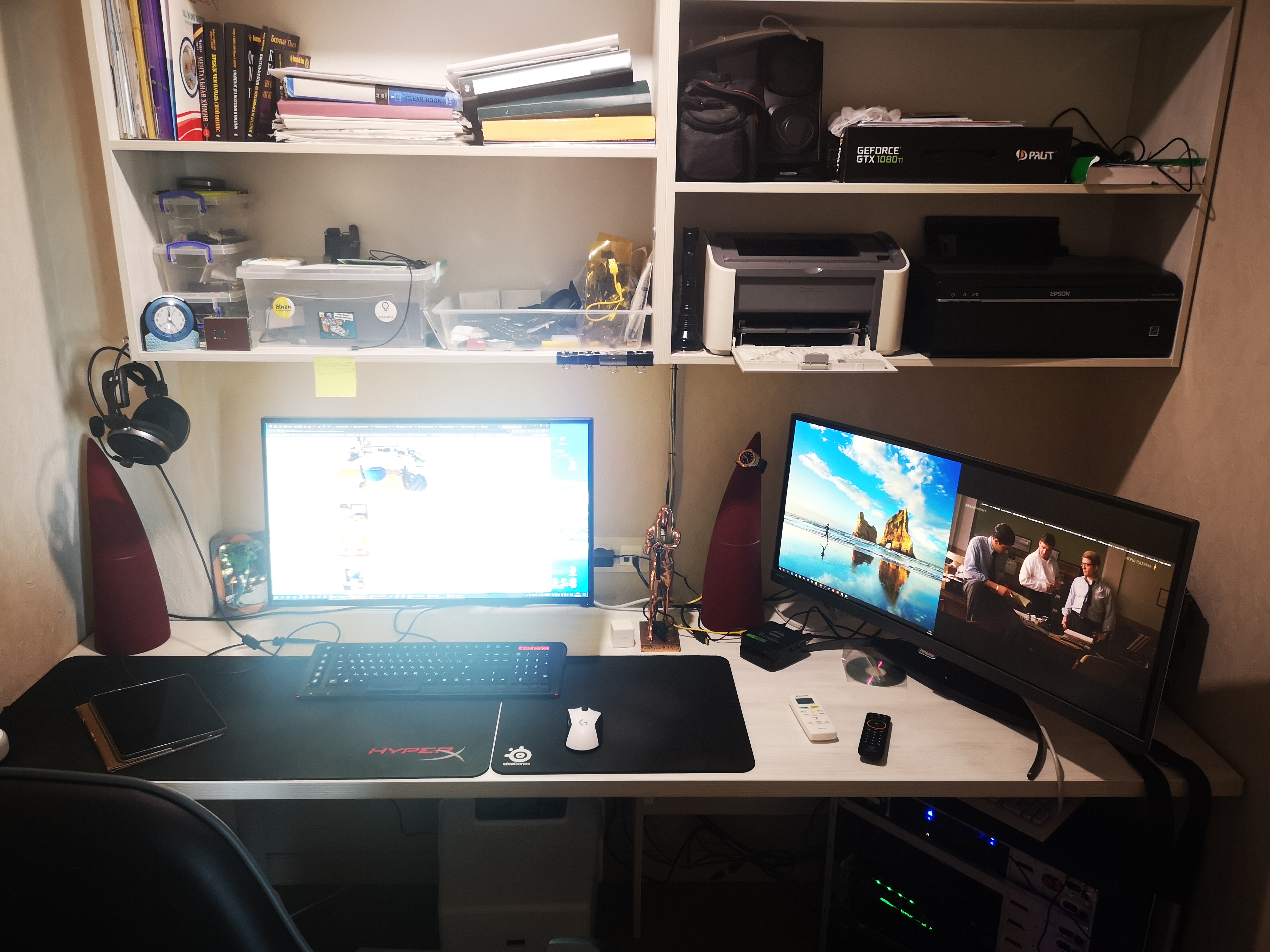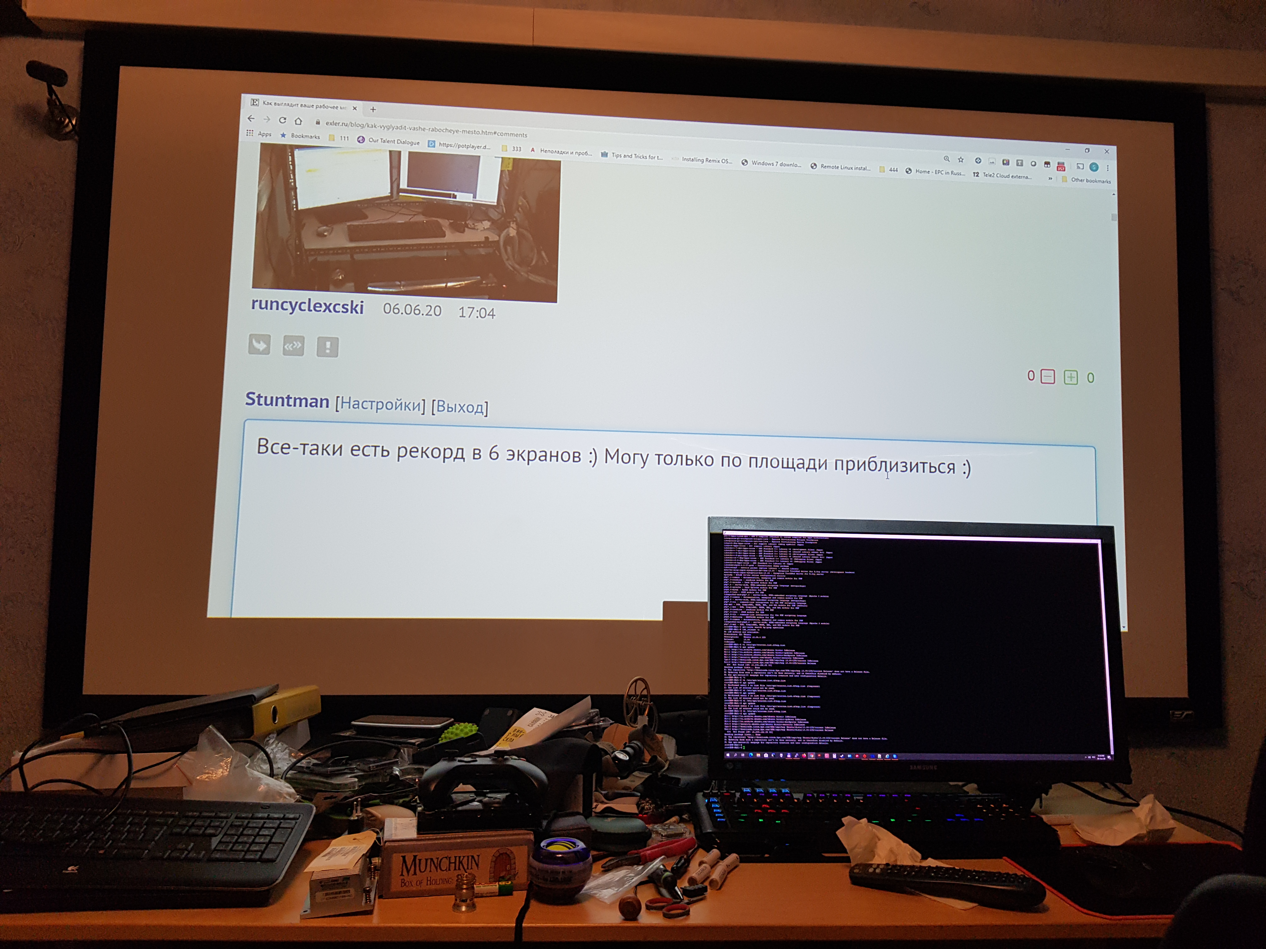 Я бы показал обычное состояние своего рабочего места, но оно у меня на работе, а я на выходных дома. (а самоизоляция — это не про нас).