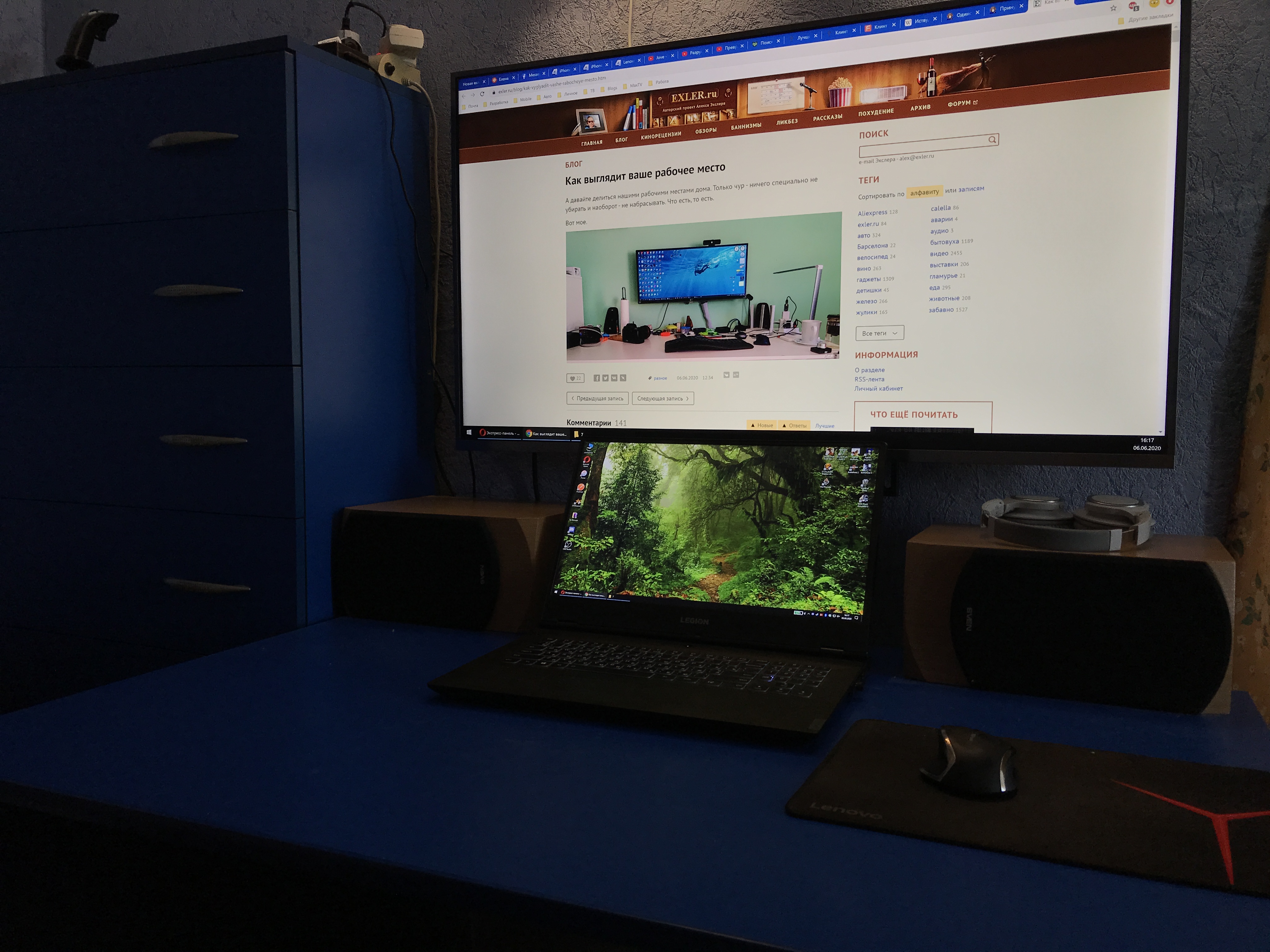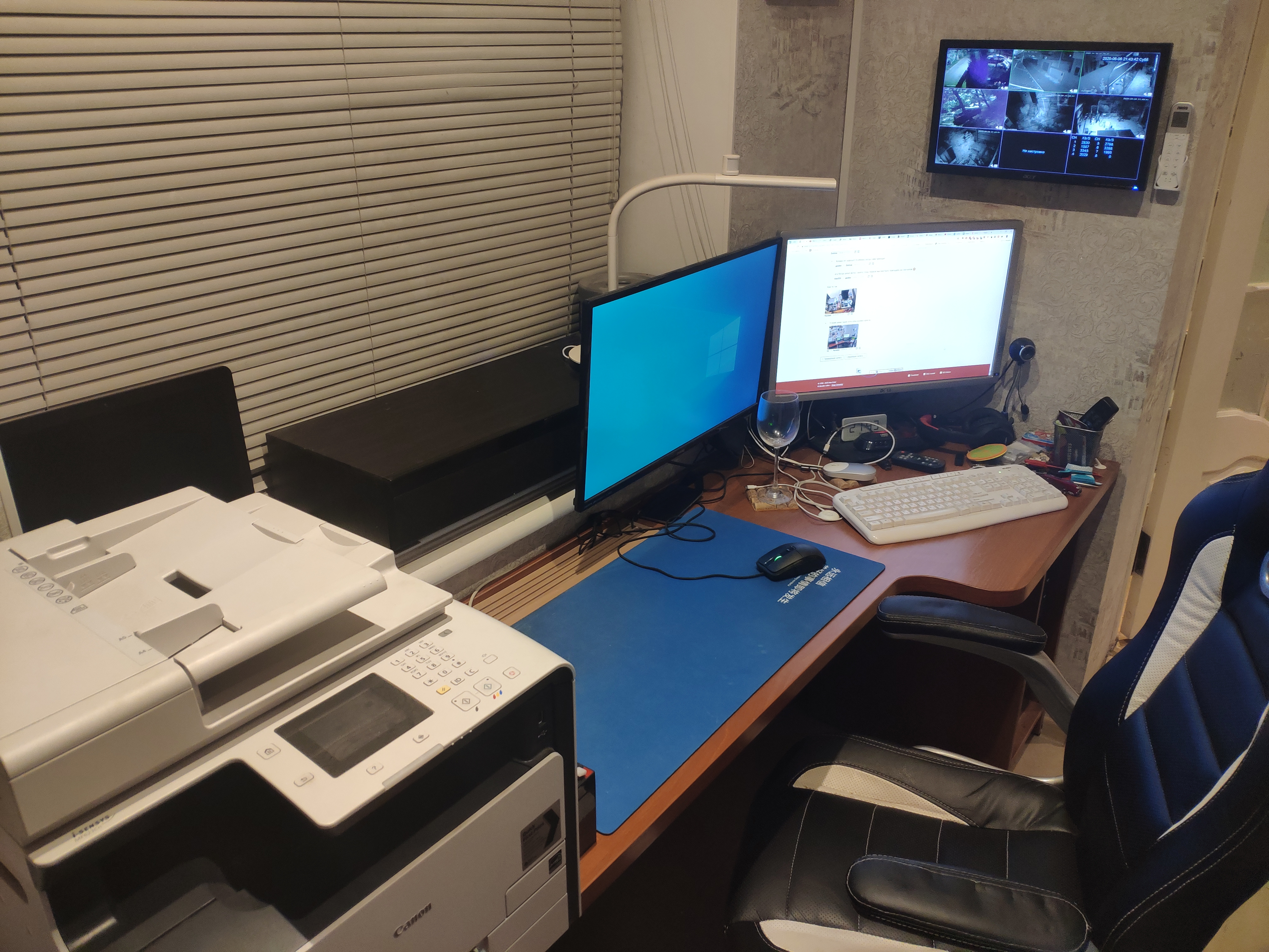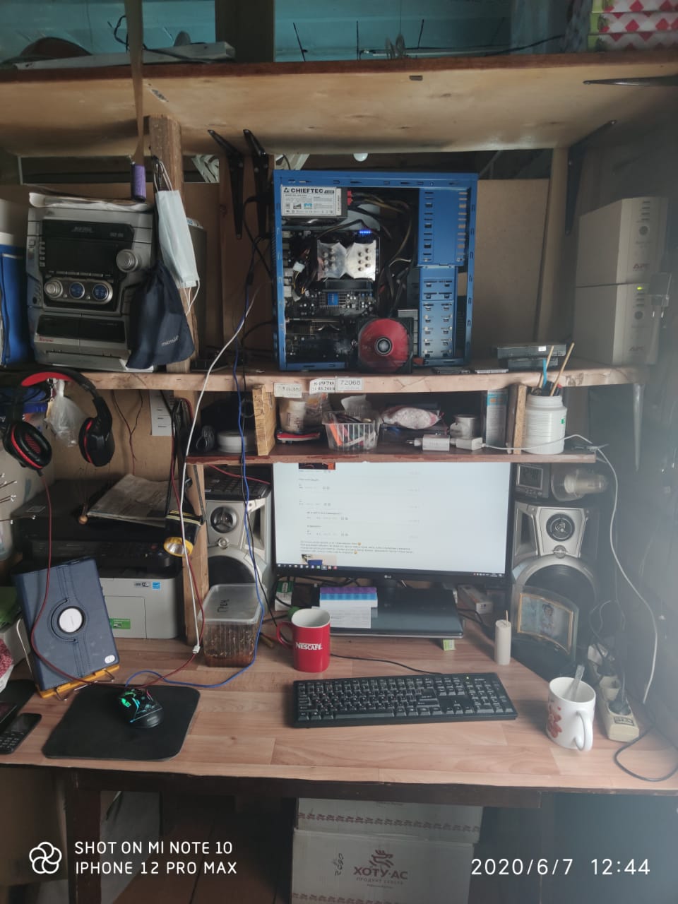 Снизу в синей кожуре - планшет хуавей, кнопочные телефоны (2шт по 2 симки) для работы. мышка и клава с ДНС самые дешманские, монитор ЛЖ на 24" кажись. тоже дешманский. На ноуте ледит контейнер-недельник для лекарств пожизненных. Ибо опять жэ возраст 😄