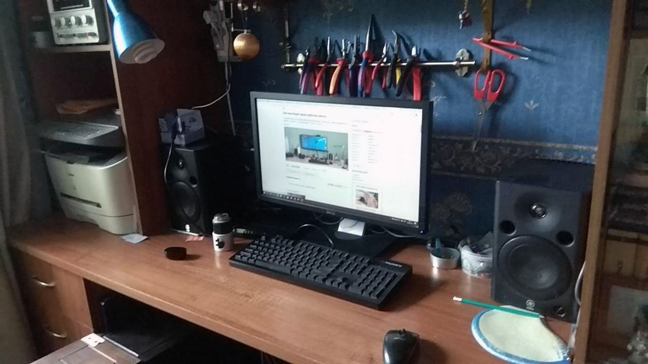 Кошка, иногда сидящая на системном блоке справа, ушла, не любит суеты. Ничего не убирал, бардак обычный.