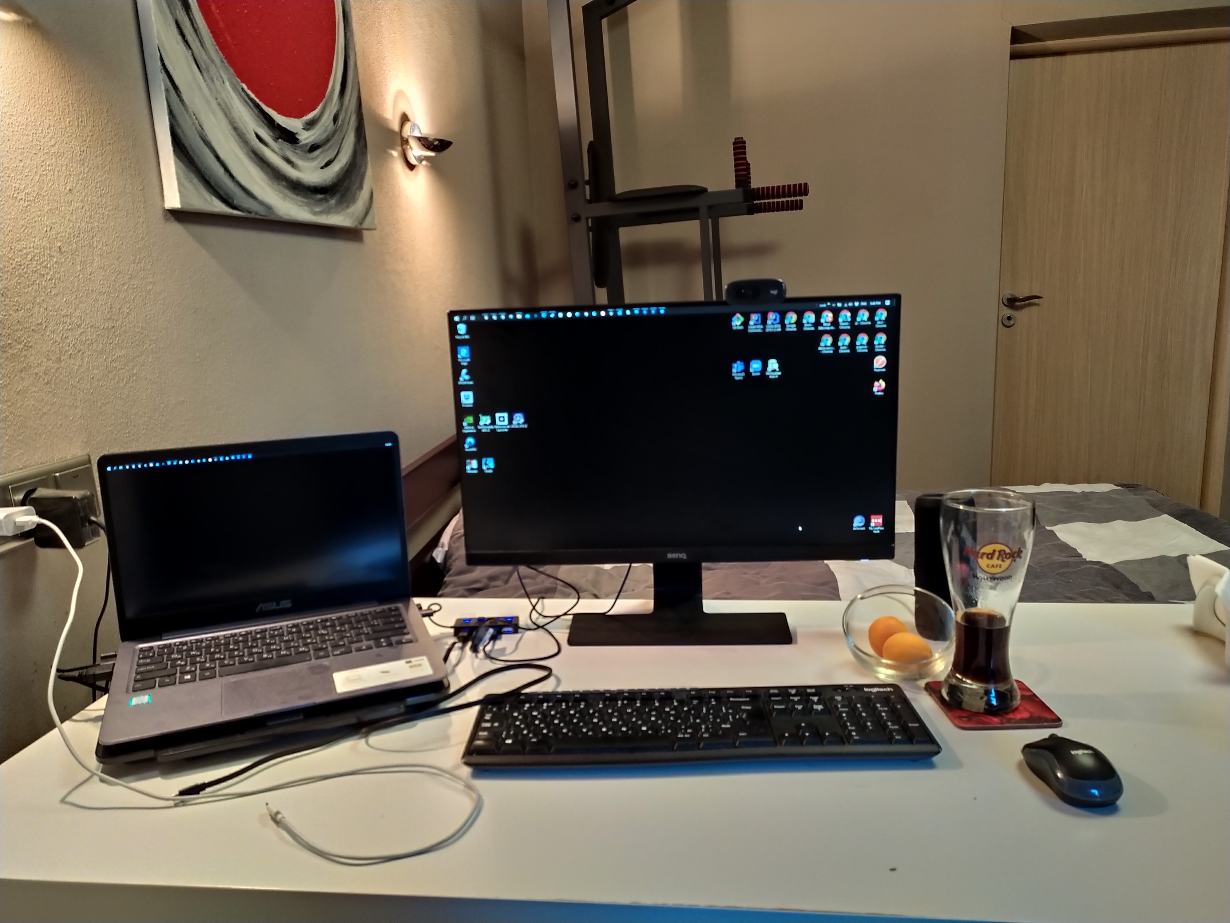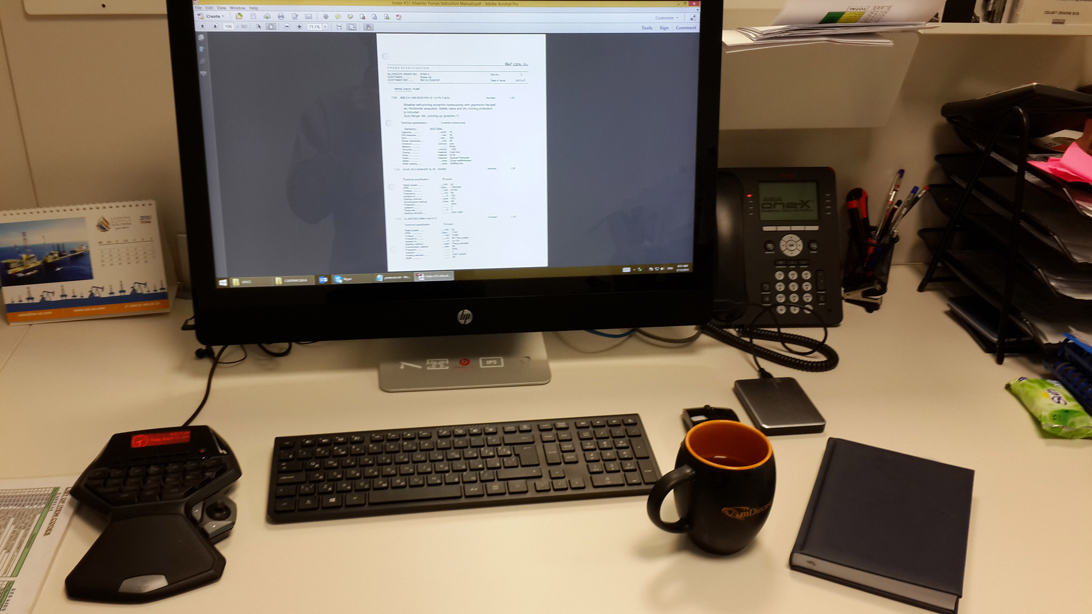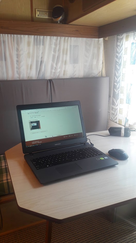 на самом деле есть еще большой рабочий кабинет (см. фото) с огромным монитором и всем делами, но т.к. кабинет в подвале, а надо следить за ребенком, который в основном на первом этаже, то сижу на кухне
