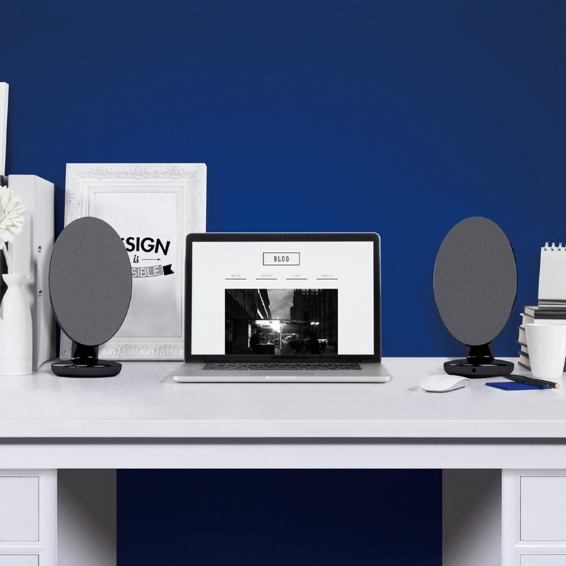 Колонки для стола большеваты, но дают отличное звучание, подключены по оптическому кабелю.