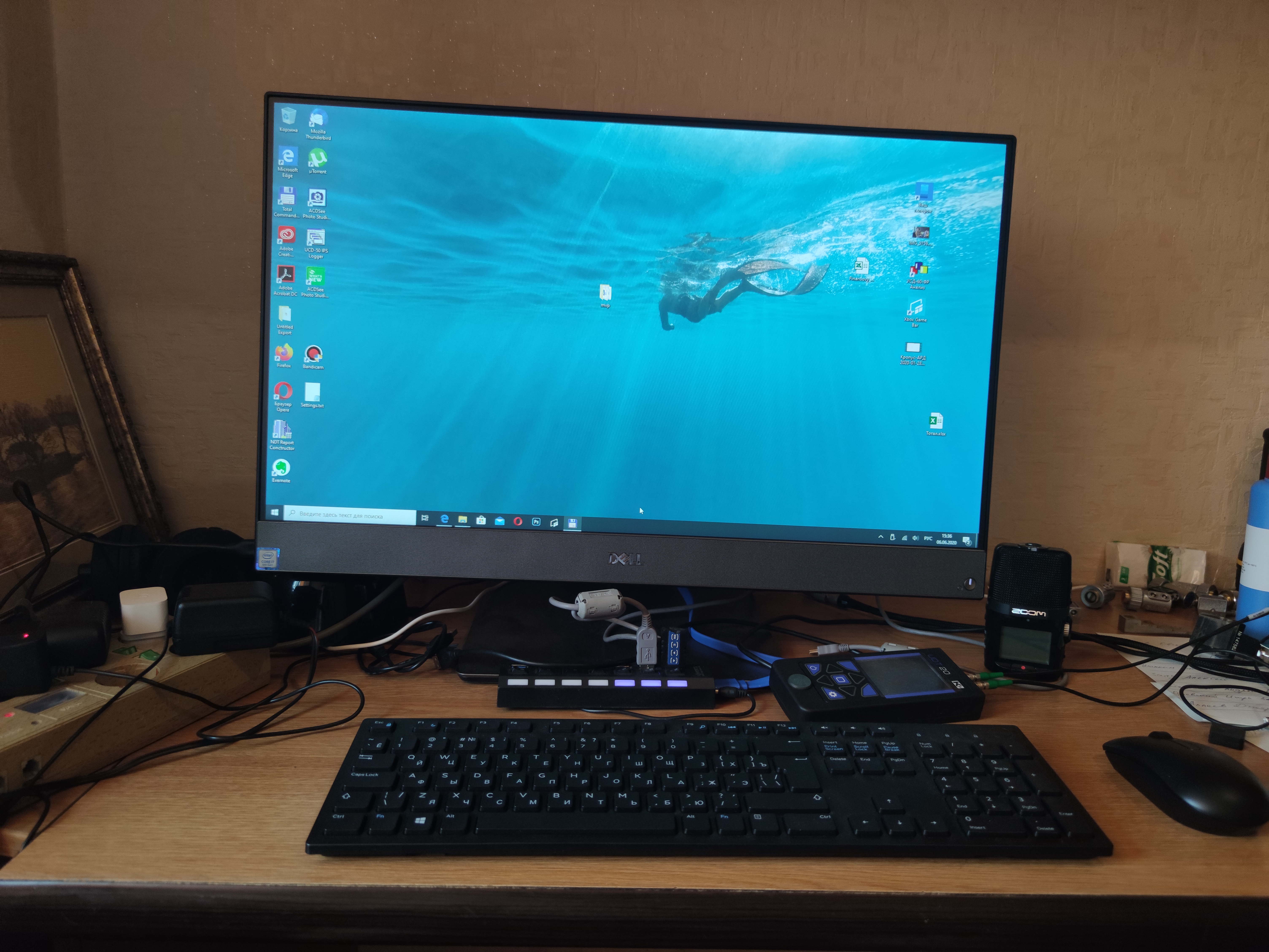 Под монитором ноутбук, слева - мёд гречичный в контейнере, две кружки, в одной кофе, в другой вода, компу уже лет 10, а его корпусу лет 20. Слева рядом с муз.центром висит тонометр японский. Возраст заставляет контролировать давление 😄