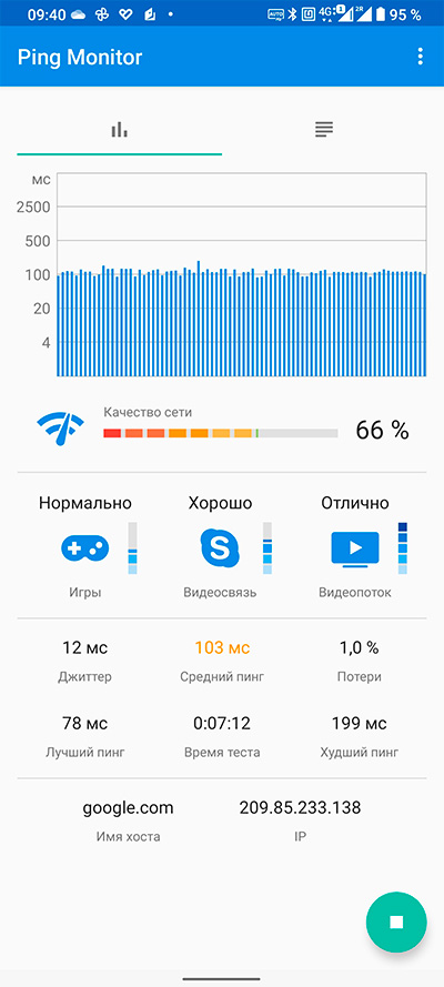 Программа называется Ping Monitor, доступна в Google Play. Абсолютно бесплатна и не содержит рекламы. Я сам ее использую не один месяц (давно хотел написать о ней, но все как-то не мог собраться), программа простая и очень удобная.