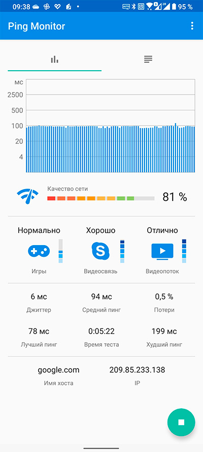 Pingmon (Ping test monitor) - это графический инструмент для замера и мониторинга качества интернета или локальной сети, Wi-Fi и 3G/LTE. Этот тест интернета визуализирует и озвучивает команду пинг и делает оценку качества сети (QoS) на основе собираемой статистики.