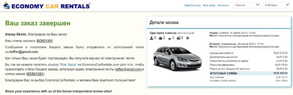 И это был уже конкретно наглый беспредел: что я, машину никогда в прокат не брал? Да, этот аванс берется для того, чтобы они гарантировали наличие машины для меня (при этом, что характерно, заказанную мной машину я и не получил), но он всегда входит в общую сумму.