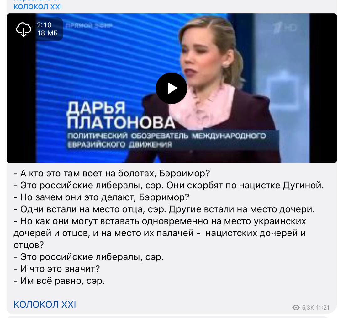 Каждая из них гораздо больше достойна скорби и эпитафий, чем откровенная пропагандистка фашизма даша дугина, до ушей перемазанная украинской кровью.