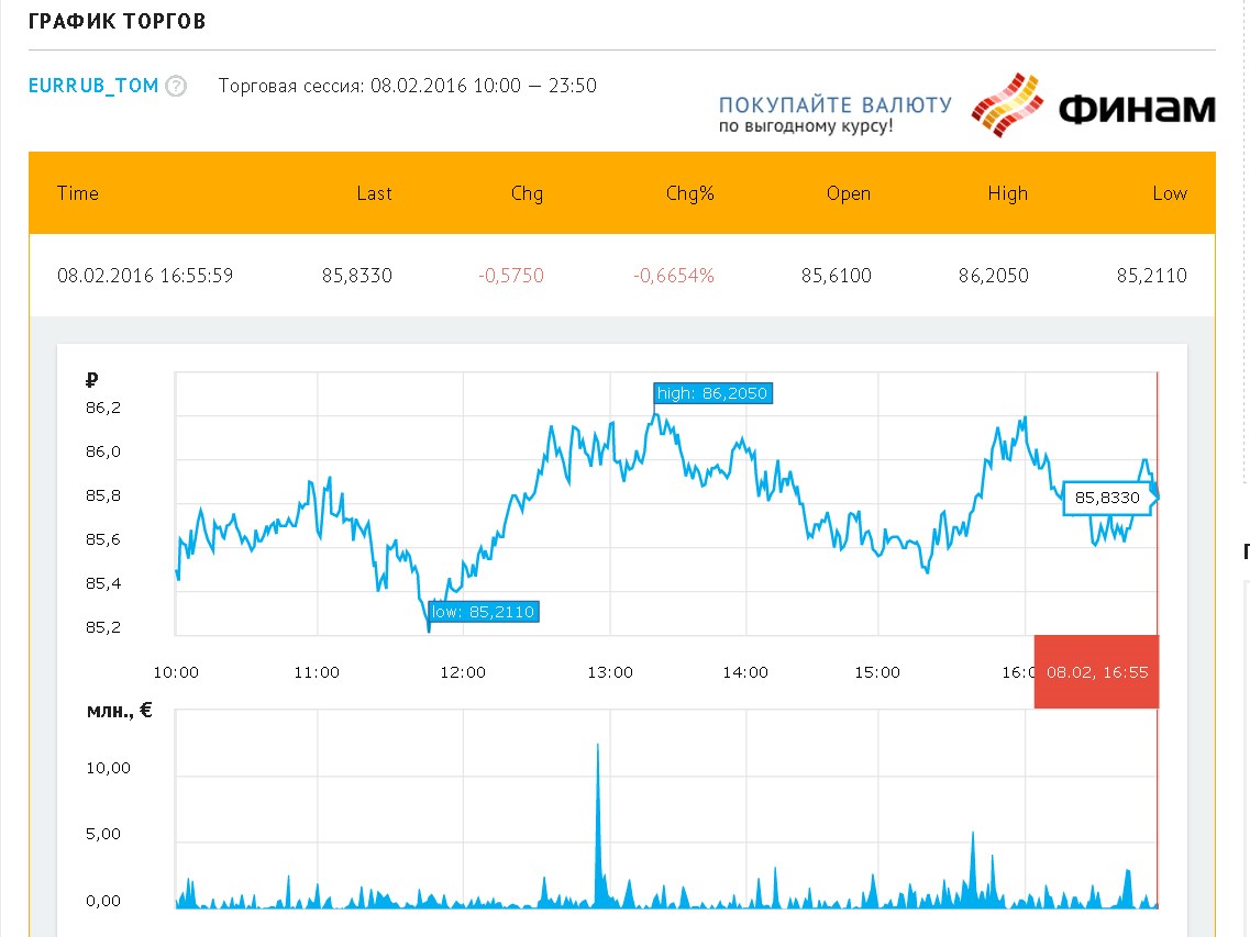 Итак, 1000 евро по курсу Сбербанка стоит 88900 руб. Если покупать евро на бирже, то 1000 евро обойдется в 85833 руб., итого разница с покупкой евро по курсу Сбербанка — 3067 руб. Разница с банковским курсом может быть еще больше. Я покупал 1000 евро по 85,8330 руб/евро, но в моменте валюту на бирже можно купить еще дешевле. Впрочем, и так неплохо получилось.