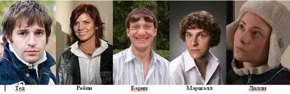 Тэд еще ничего, Робин сразу напомнила сотню мелькающих на экране звездищ, Барни - Гена же Букин вылитый, ничего общего с оригиналом, Маршал - тут пудель тощий какой-то, а в оригинале большой добрый парень, Лили - не знаю что сказать, но оригинальную очаровашку с маленькими тараканами скопировать, ИМХО, утопия.