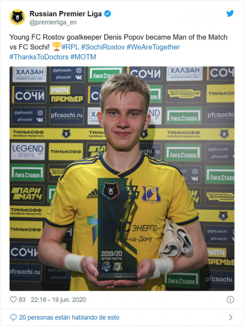 Британская пресса - "Russian Premier League team let in TEN but even Roy Keane couldn't blame this keeper after 17-year-old sets new record for shots SAVED when Rostov are forced to field the kids due to six players testing positive for coronavirus" .