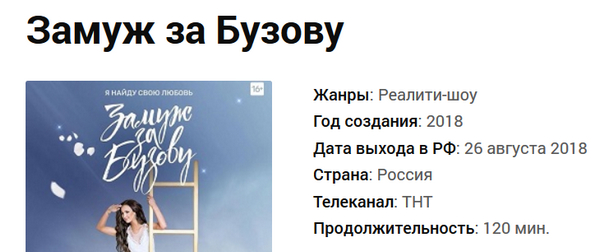 Слушайте, эти идиоты действительно назвали шоу "Замуж за Бузову". Я думал, что это хохма такая дурацкая. А это даже и не хохма...