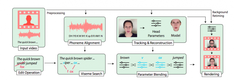 Чтобы отредактированный голос больше походил на речь модели, исследователи пользуются программой VoCo, которую они представили в 2016 году. Проанализировав небольшой монолог человека, она способна «спародировать» его голос.