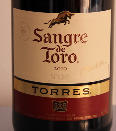 Далее идет хорошо известное в России Sangre de Toro (переводится как "Бычья кровь") того же каталонского хозяйства Torres, в котором производят белое Vina Esmeralda. Хорошее повседневное вино. Состав - гарнача тинта 65%, кариньена 35%. В Испании порядка 5 евро.
