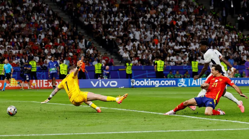На 90-й минуте финального матча вратарь Испании Унаи Симон отбил удар Деклана Райса. Марк Гехи попытался добить мяч в сетку, но Дани Ольмо вынес мяч головой с линии ворот. После этого Райс пробил головой, но промахнулся.