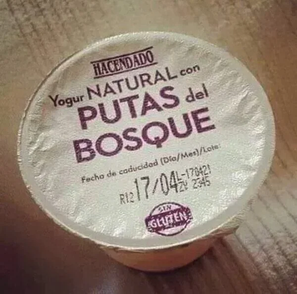 Попался мне тут в одном из местных испанских магазинов йогурт с несколько необычным названием "Натуральный йогурт с лесными шлюхами". Надо же, подумал я, какой интересный бренд!
