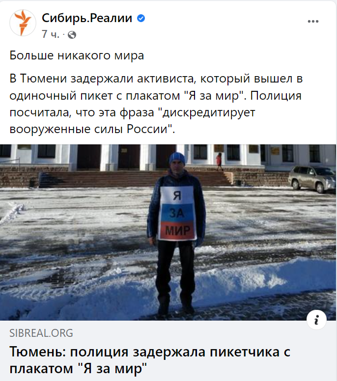Интересно, вообще то, что написано на плакате имеет значение? Если написать что-то предельно лояльное, типа "Да здравствуют Российские Вооружённые Силы!", "Слава Шойгу!" или нарисовать перечёркнутый пацифик тоже заберут или не тронут?