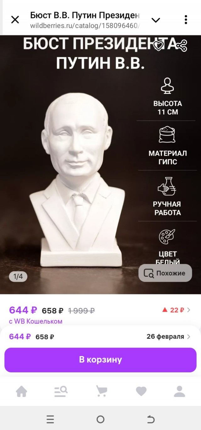 Можно было бы подарить бюст путина из полония, в натуральную величину, на рабочий стол.