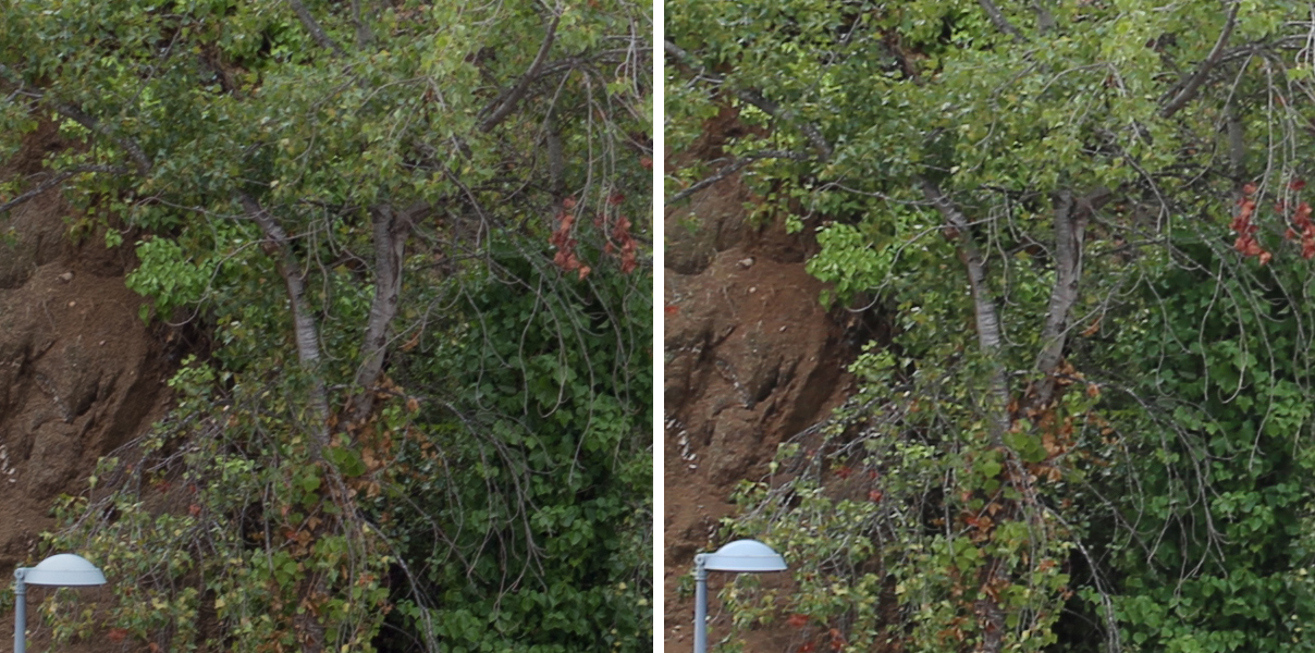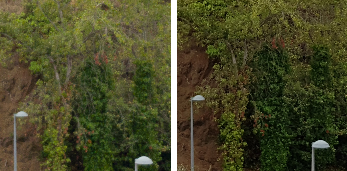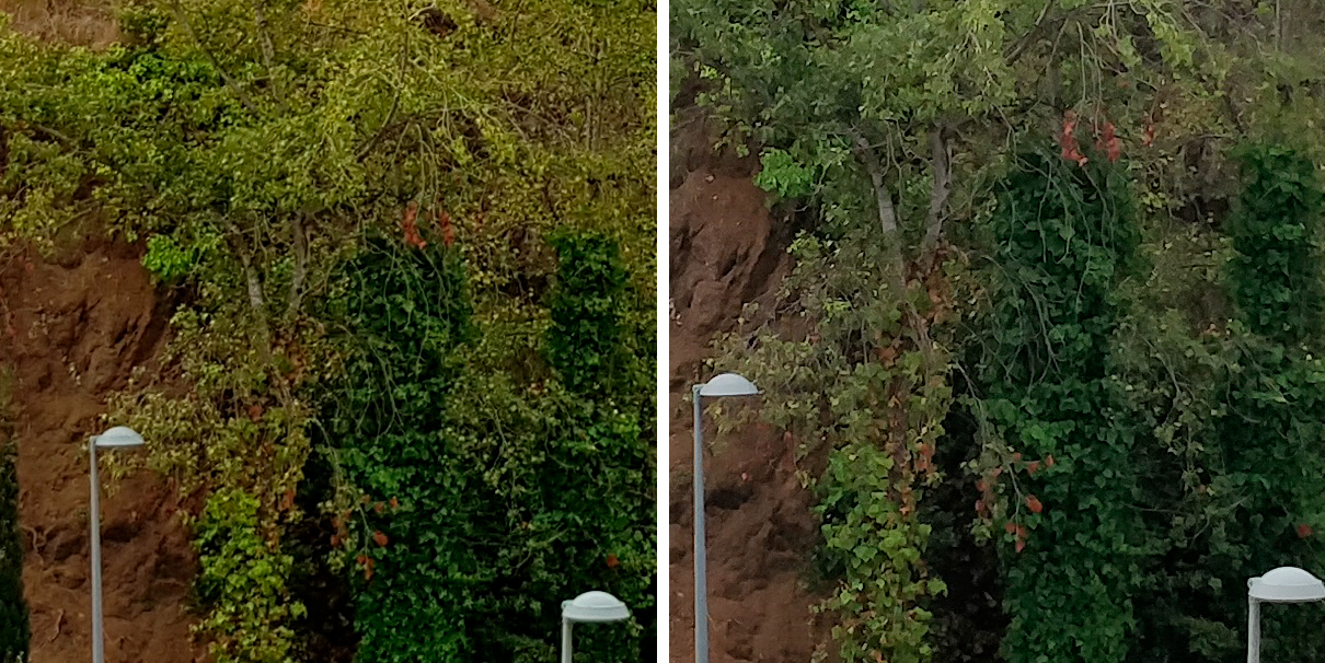 Но можно заглянуть в исходничек - слева RAW (проявка в Фотошопе без дополнительных настроек), сделанный на S8+, справа - он же в его JPG.