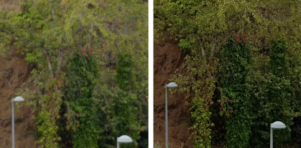 То же самое для OnePlus 5 - слева RAW, справа JPG. OnePlus тоже добавляет контраста и насыщенности, но так не шарпит, как Samsung.