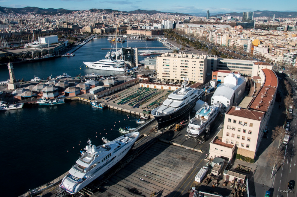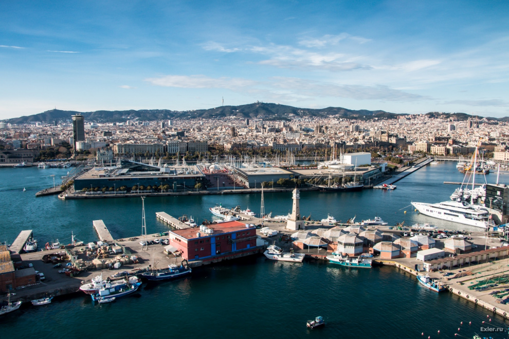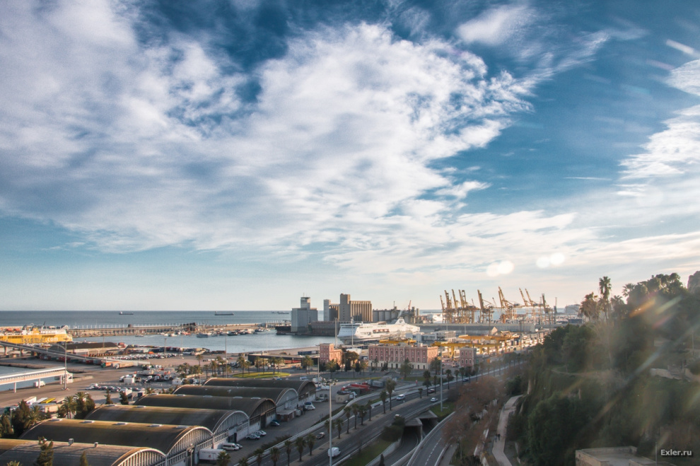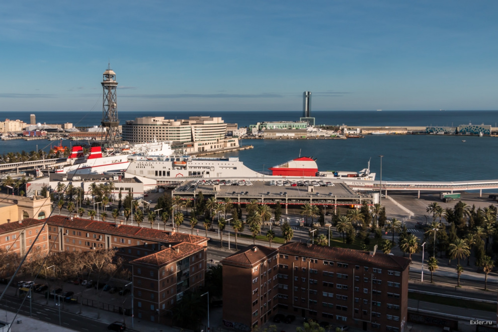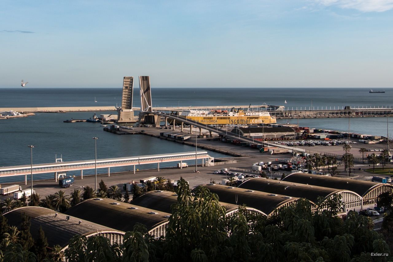 Вид с горы Монжуик на порт. В Барселоне тоже есть разводные мосты. По крайней мере, один.