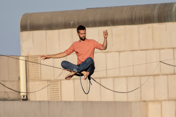 Вчера, в воскресенье, многие жители Барселоны стали свидетелями очень необычного зрелища: на высоте 70 метров от земли некий мужчина шел босиком по стальному тросу, протянутому над улицей Пасеиг-де-Грасия от здания Telefónica до здания Generali.