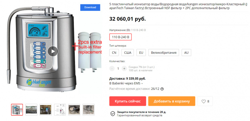 Что-то, я считаю, как-то демпингуют они. Агрегат только для водородной воды стоит 350 тысяч, а тут тебе и ощелачивание, и структура меняется, и минералы в свободной форме. Я рассчитывал минимум на 400 тысяч.