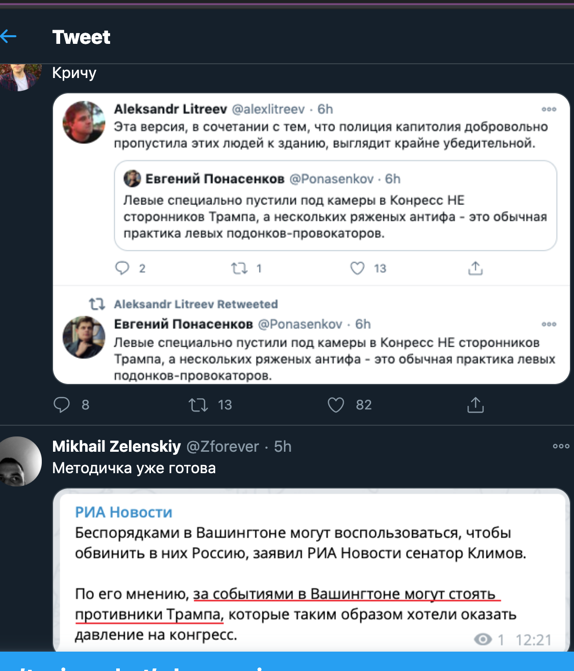 Да там много такой шизофрении вокруг протестов трампистов. Сам Трамп заявляет, с одной стороны, что выборы украдены, а с другой, что власть Байдену будет передана организованно без проблем. Сам подзуживал своих сторонников к решительным действиям и сам же струсил, когда те таки перешли к решительным действиям.