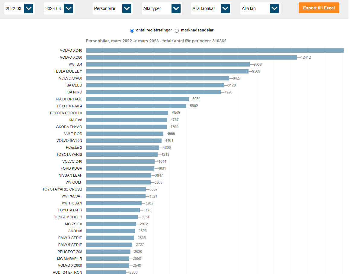 а вот если взять статистику за 23й год - там в отрыв пошла Тесла