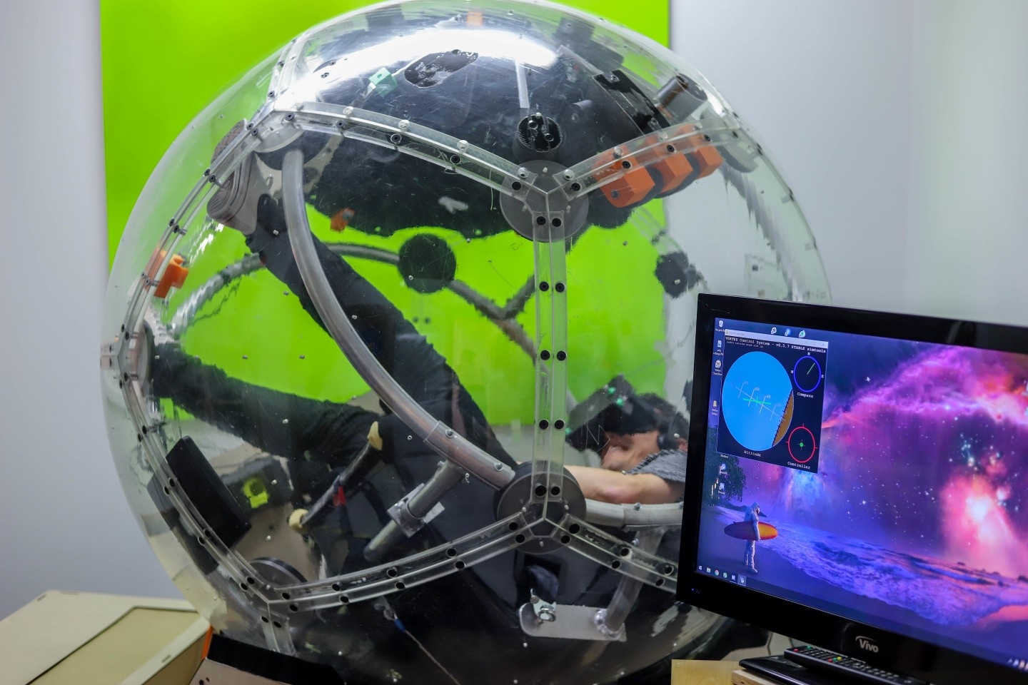 Eight360 Nova – это огромная подвижная сфера весом в 500 кг с диаметром 2 метра. Капсула может менять свое направление молниеносно по всем направлениям за счет отсутствия жесткой связи с фундаментом. Eight360 Nova может за одну секунду повернуться на 180 градусов, тем самым имитируя резкое торможение, препятствия на дорогах, повороты и столкновения.