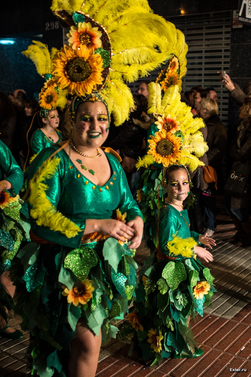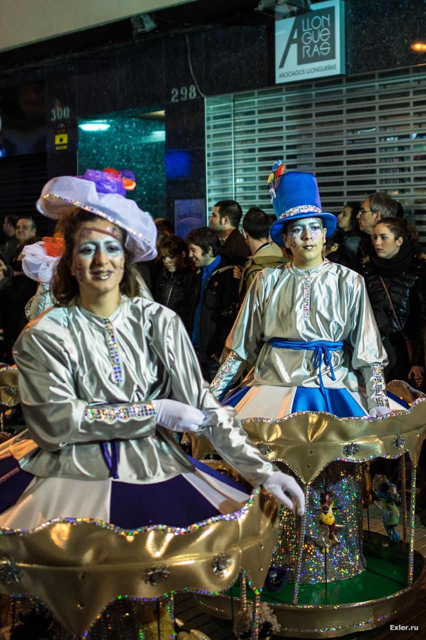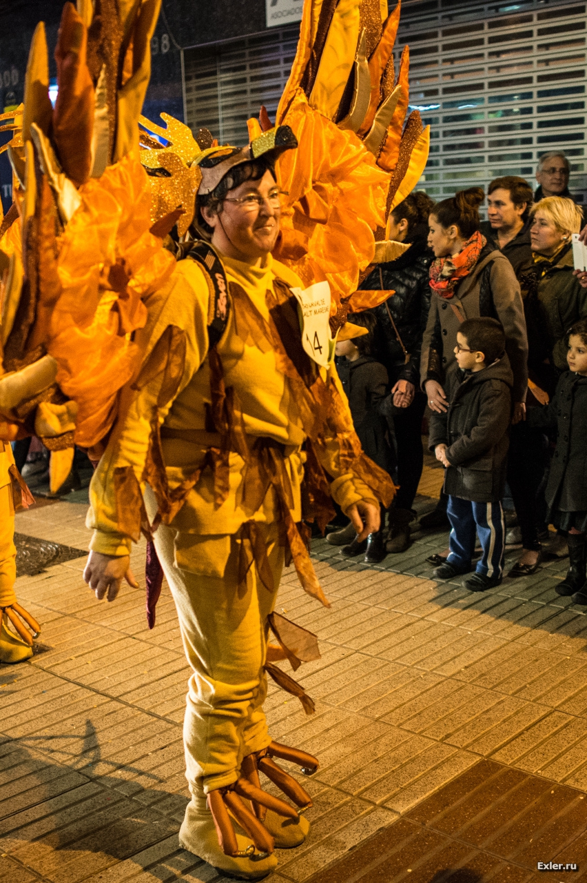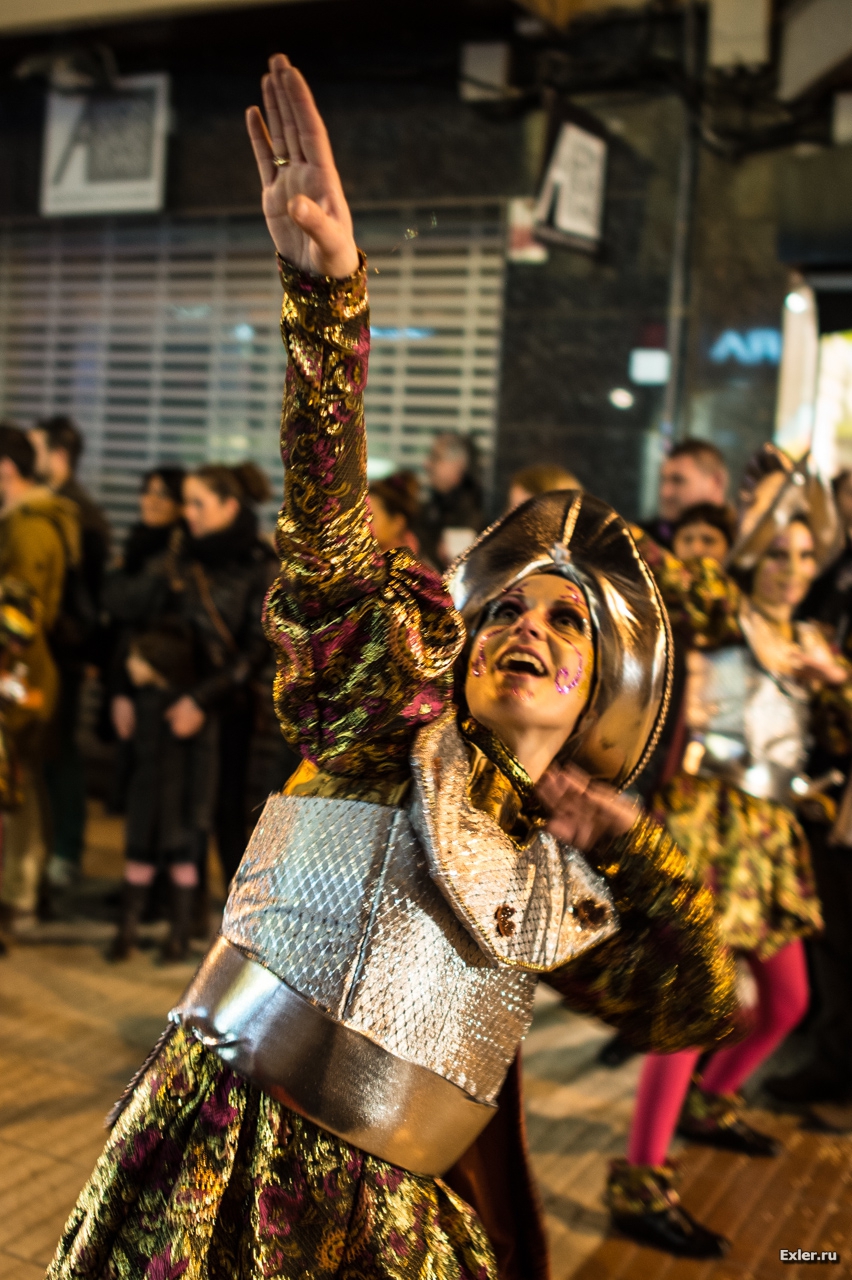 В субботу вечером, 8 марта, в городе Калейе прошел веселый карнавал, в котором принимали участие как жители Калейи, так и жители немаленького количества окрестных городов. Карнавал очень напоминает "Шествие с гигантами", в котором также участвуют жители со всех окрестностей, однако тут шествие поинтереснее, потому что группы участников готовят и экзотические костюмы, и машины сопровождения, многие из которых бывают очень причудливо украшены, и звуковое сопровождение, и танцы. Плюс - проводится карнавал вечером, а не днем: шествие начинается в районе 19 часов, проходит через главные улицы двух городов (Пинеды-де-Мар и непосредственно Калейи), змейкой проходит по Калейе и потом в 23 часа в огромном здании бывшей фабрики, которое мэрия нередко использует для различных мероприятий, проводятся награждения за лучшие костюмы и лучшие выступления.