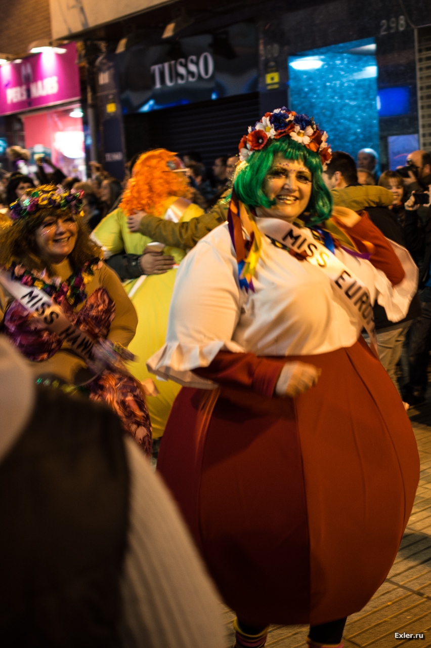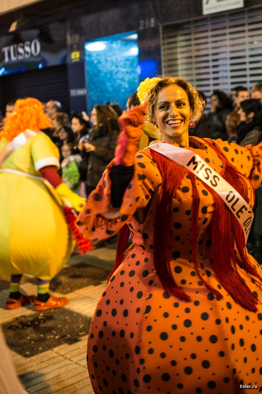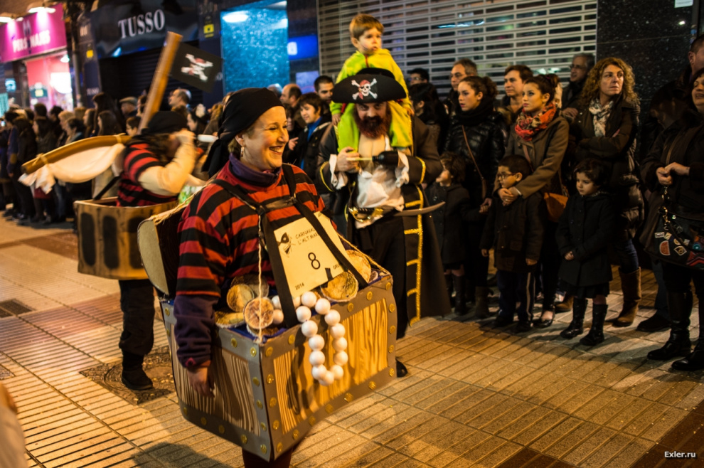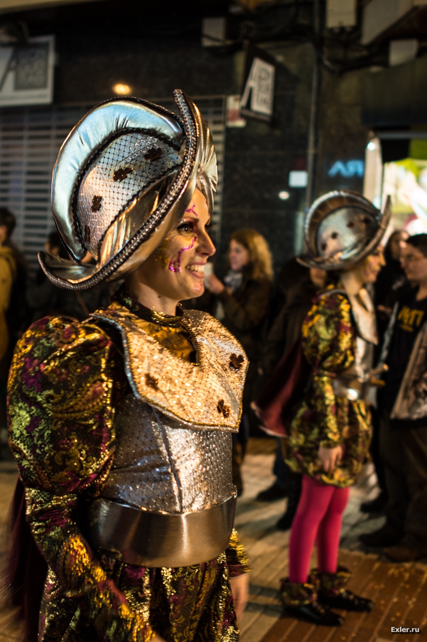 В субботу вечером, 8 марта, в городе Калейе прошел веселый карнавал, в котором принимали участие как жители Калейи, так и жители немаленького количества окрестных городов. Карнавал очень напоминает "Шествие с гигантами", в котором также участвуют жители со всех окрестностей, однако тут шествие поинтереснее, потому что группы участников готовят и экзотические костюмы, и машины сопровождения, многие из которых бывают очень причудливо украшены, и звуковое сопровождение, и танцы. Плюс - проводится карнавал вечером, а не днем: шествие начинается в районе 19 часов, проходит через главные улицы двух городов (Пинеды-де-Мар и непосредственно Калейи), змейкой проходит по Калейе и потом в 23 часа в огромном здании бывшей фабрики, которое мэрия нередко использует для различных мероприятий, проводятся награждения за лучшие костюмы и лучшие выступления.