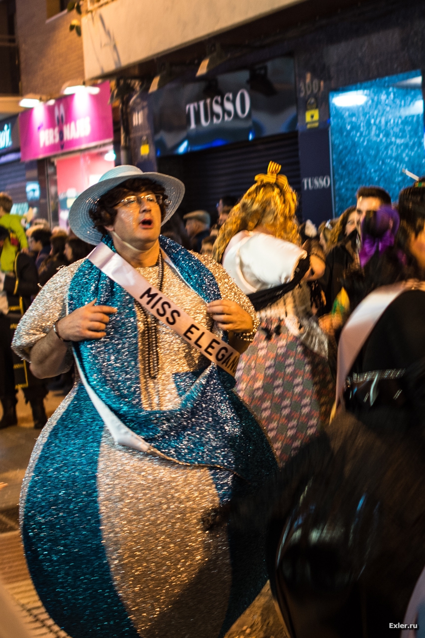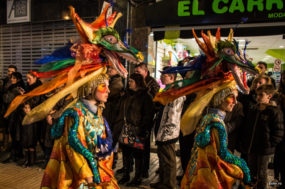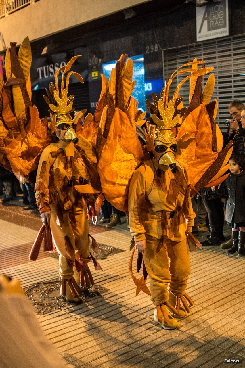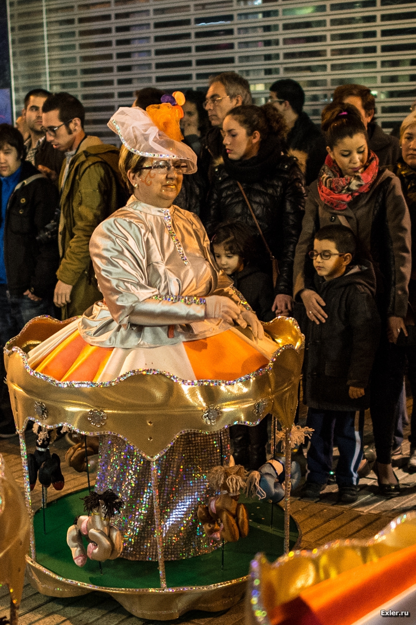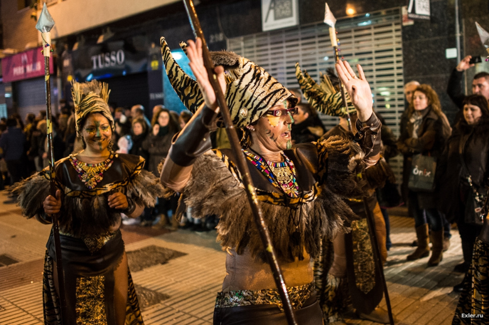 В субботу вечером, 8 марта, в городе Калейе прошел веселый карнавал, в котором принимали участие как жители Калейи, так и жители немаленького количества окрестных городов. Карнавал очень напоминает "Шествие с гигантами", в котором также участвуют жители со всех окрестностей, однако тут шествие поинтереснее, потому что группы участников готовят и экзотические костюмы, и машины сопровождения, многие из которых бывают очень причудливо украшены, и звуковое сопровождение, и танцы. Плюс - проводится карнавал вечером, а не днем: шествие начинается в районе 19 часов, проходит через главные улицы двух городов (Пинеды-де-Мар и непосредственно Калейи), змейкой проходит по Калейе и потом в 23 часа в огромном здании бывшей фабрики, которое мэрия нередко использует для различных мероприятий, проводятся награждения за лучшие костюмы и лучшие выступления.