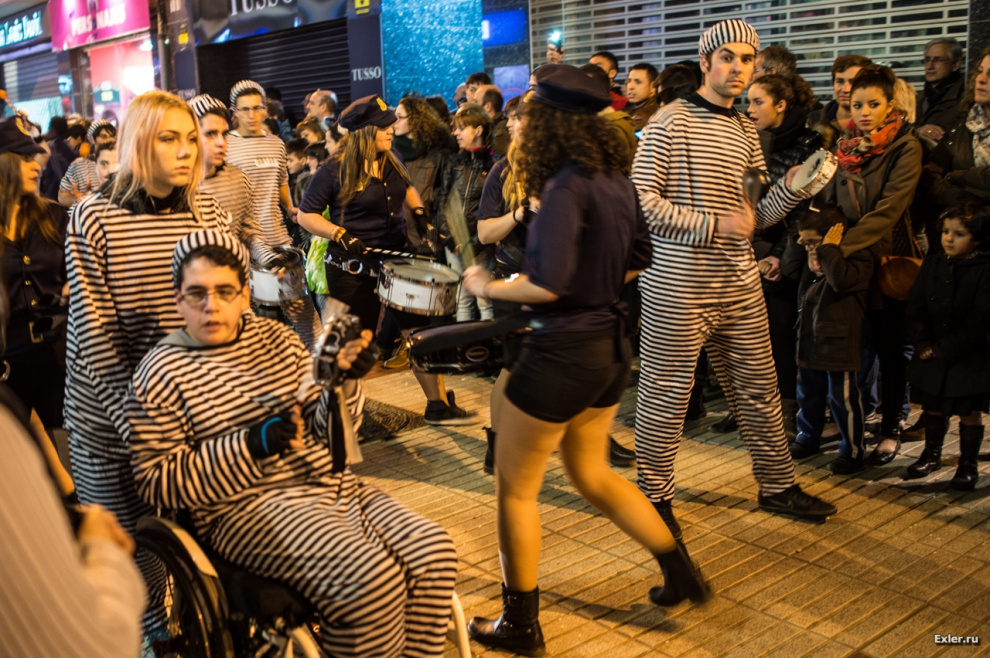 Группа очаровательных тюремщиц и заключенных. Обратите внимание на участвующего в шествии мальчика-инвалида. В этих краях люди с проблемами со здоровьем не выключаются из активной общественной жизни: они и на различных мероприятиях всегда присутствуют, и сами в них участвуют оченьактивно. Я считаю, что это просто здорово.