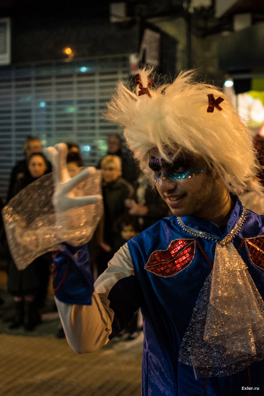Проходит это, как обычно, очень весело: народ заранее собирается на главной улице города, ждет начала шествия, а потом, когда шествие начинается, город взрывается радостными криками и все веселятся и апплодируют выступающим.