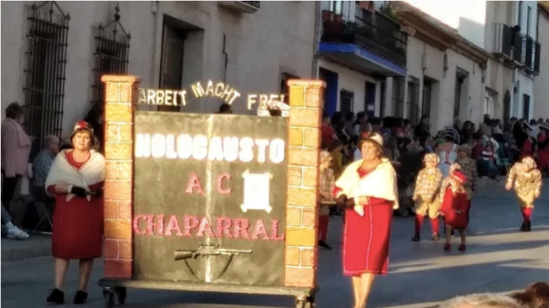 Сейчас по Испании повсеместно проходят карнавалы. Обычно это красивое, яркое и веселое зрелище. В местечке poble de Campo de Criptana, Ciudad Real, что в Кастилии Ла Манче, группа выступающих на карнавале задорными танцами и костюмами изобразили Холокост - уничтожение евреев нацистами во время Второй мировой войны.
